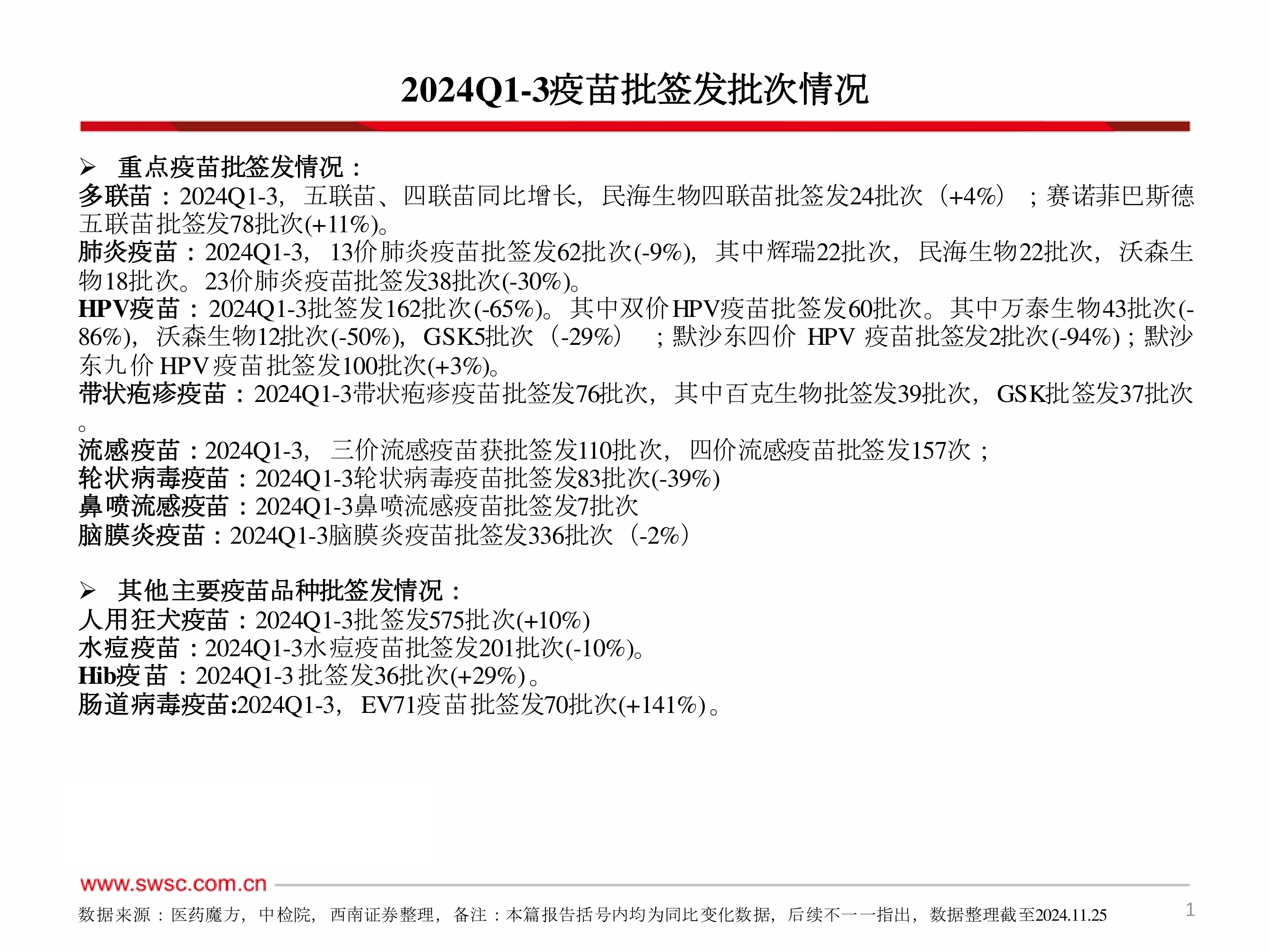 2024年Q1-3疫苗行业跟踪报告(附批签发)