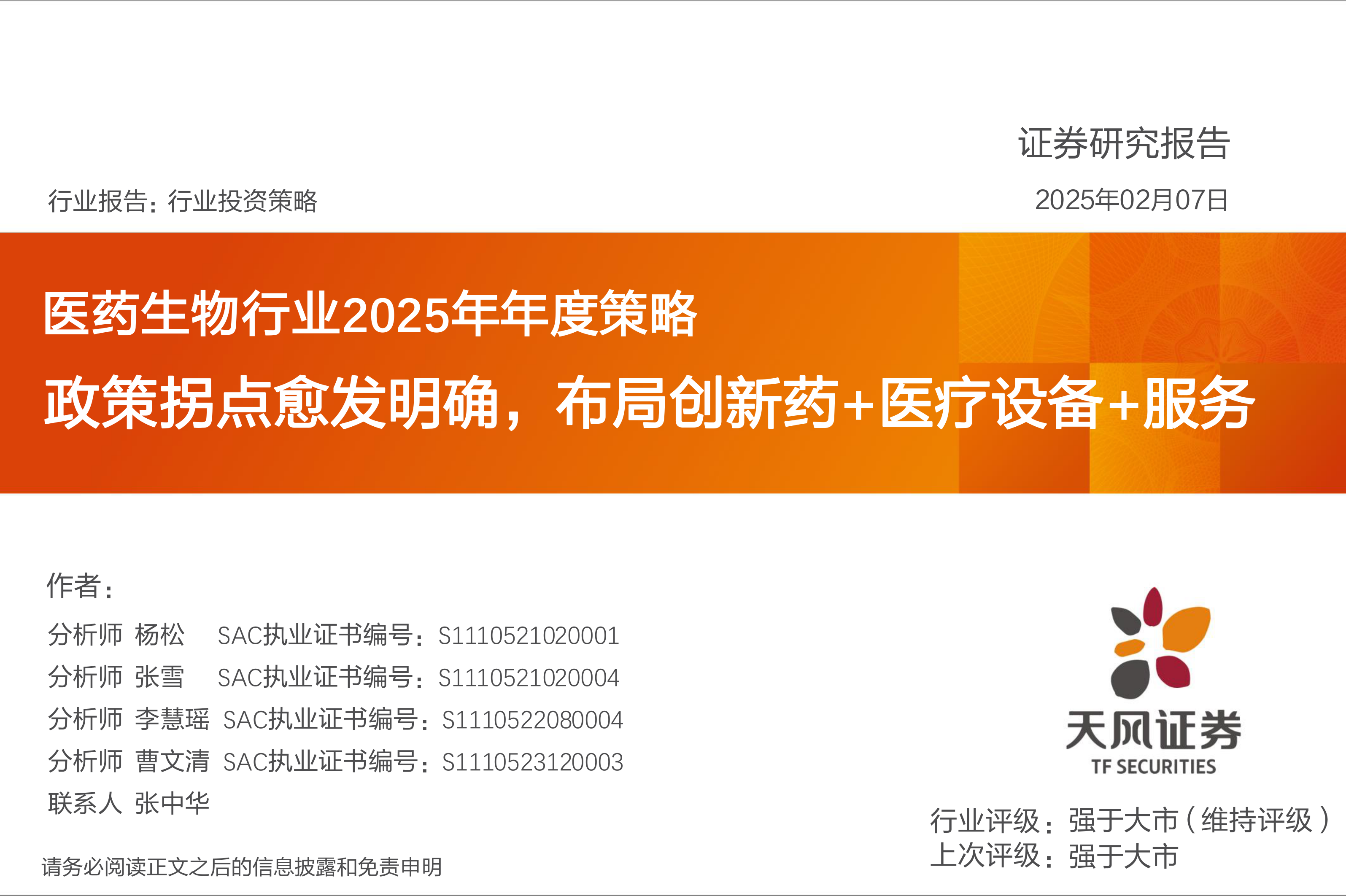 医药生物行业2025年年度策略:政策拐点愈发明确,布局创新药+医疗设备+服务