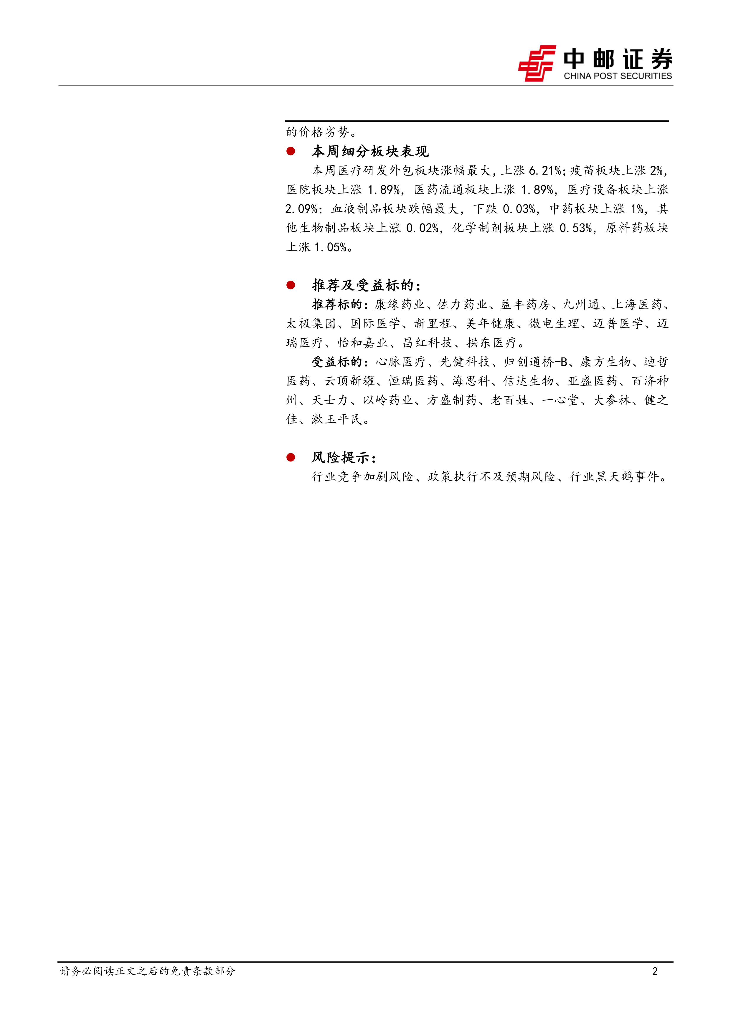 推荐标的:康缘药业、佐力药业、益丰药房、九州通、上海医药太极集团、国际医学、新里程、美年健康、微电生理、迈普医学、迈瑞医疗、怡和嘉业、昌红科技、拱东医疗。