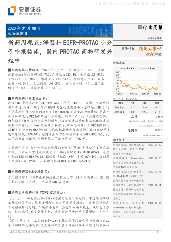 新药周观点:海思科EGFR-PROTAC小分子申报临床,国内PROTAC药物研发兴起中