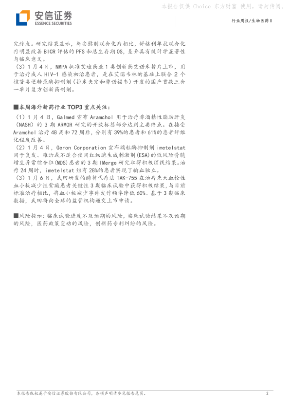 风险提示:临床试验进度不及预期的风险,临床试验结果不及预期的风险,医药政策变动的风险,创新药专利纠纷的风险。