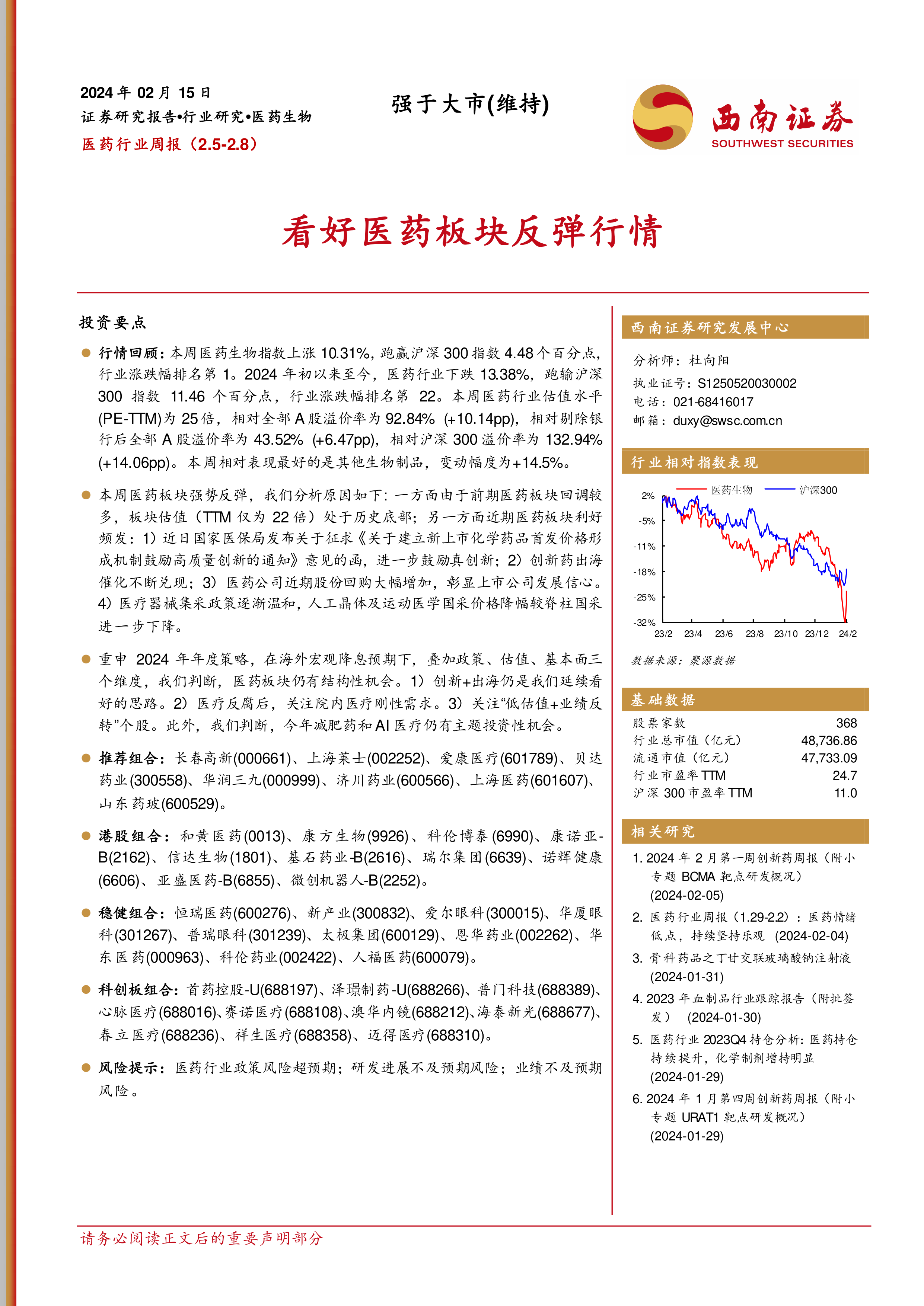 最后,报告提供了丰富的研究报告资源,涵盖了宏观策略、行业细分、公司深度分析及政策解读等多个层面,为投资者提供了全面的信息支持。尽管市场存在医药行业政策超预期、研发进展不及预期和业绩不及预期等风险,但整体而言,医药板块在多重积极因素的推动下,有望在2024年迎来结构性修复和增长。
