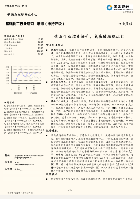 基础化工行业研究:萤石行业控量提价,氨基酸维稳运行