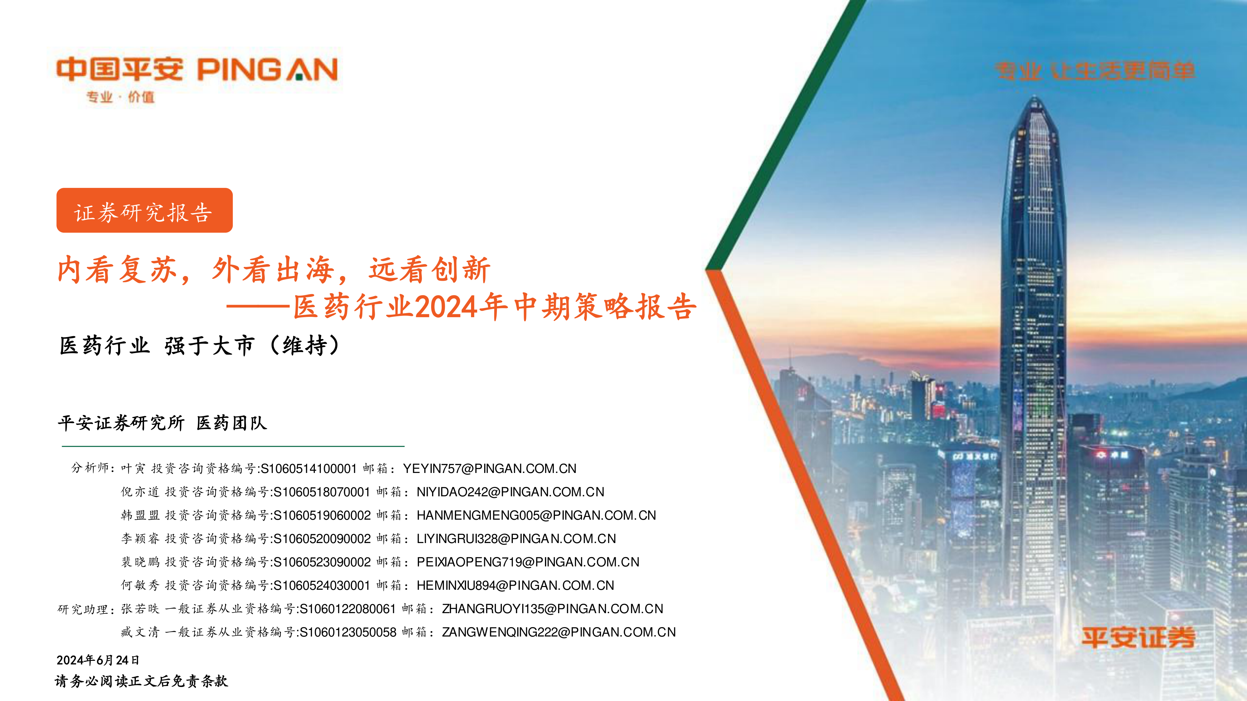 医药行业2024年中期策略报告:内看复苏,外看出海,远看创新
