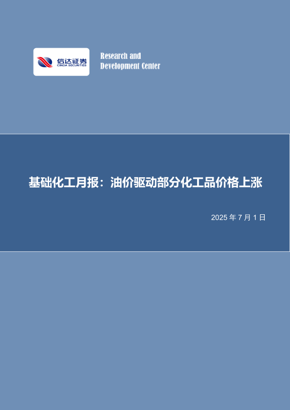 基础化工月报:油价驱动部分化工品价格上涨