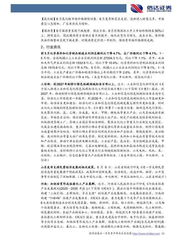 尽管部分产品价格上涨,但前5月化学原料和化学制品制造业利润总额和出厂价格同比下降,显示行业整体盈利能力面临挑战。同时,国家政策积极引导行业绿色低碳转型和产业集群发展,如工信部推动绿色低碳标准化,以及地方政府支持民营经济和临港化工产业发展。