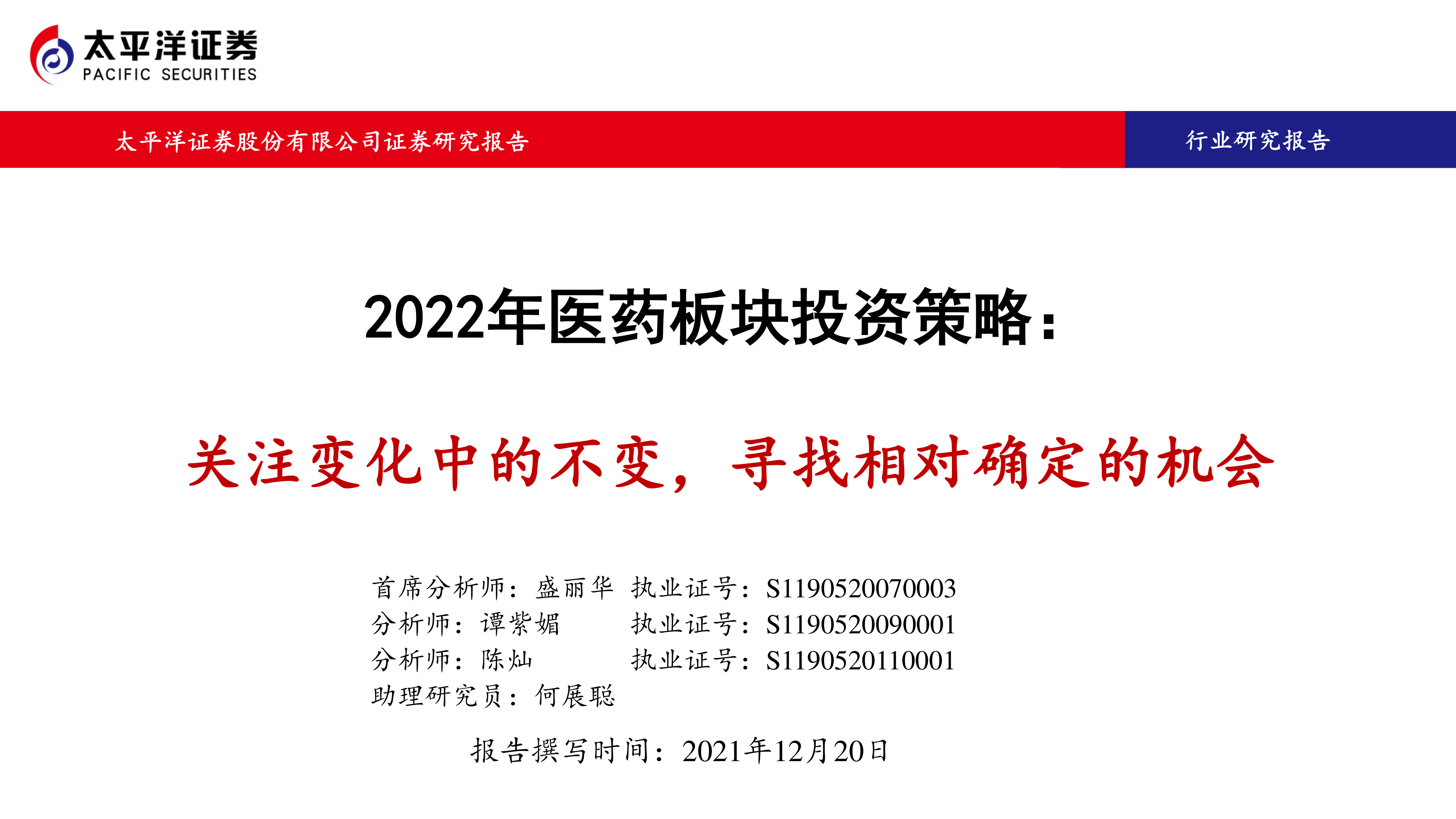 2022年医药板块投资策略:关注变化中的不变,寻找相对确定的机会