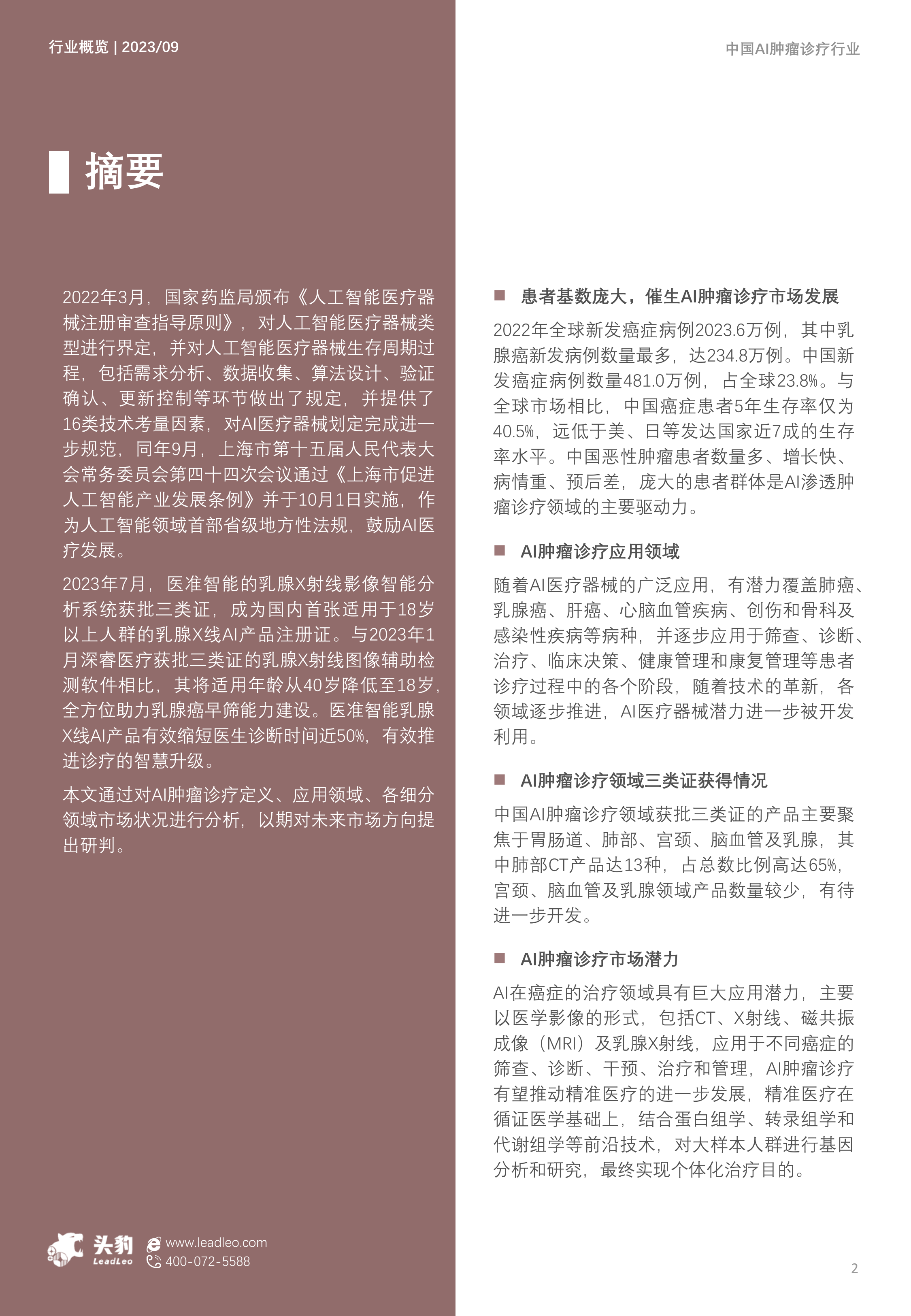 2023年中国AI肿瘤诊疗行业概览:AI赋能肿瘤诊疗,构建医疗新生态