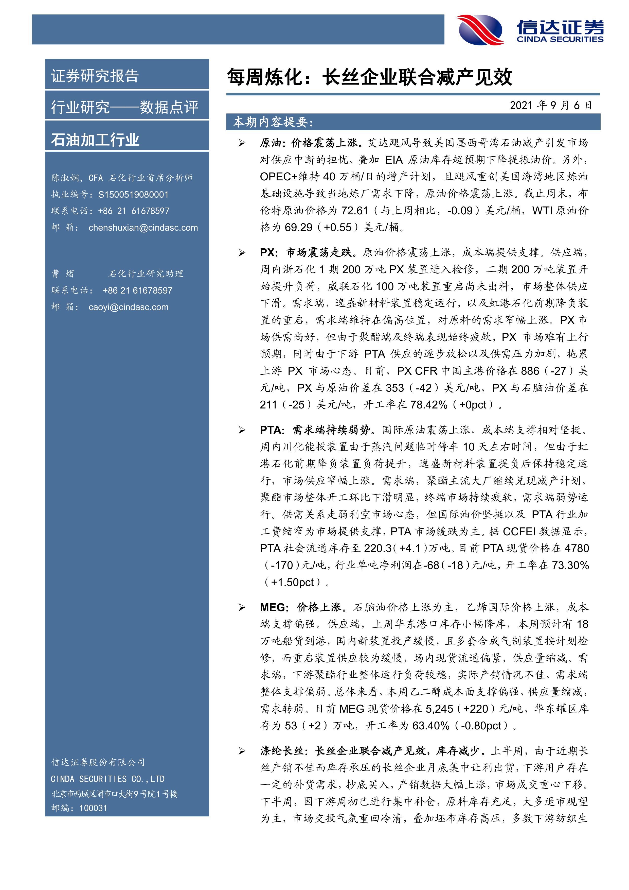 石油加工行业每周炼化:长丝企业联合减产见效