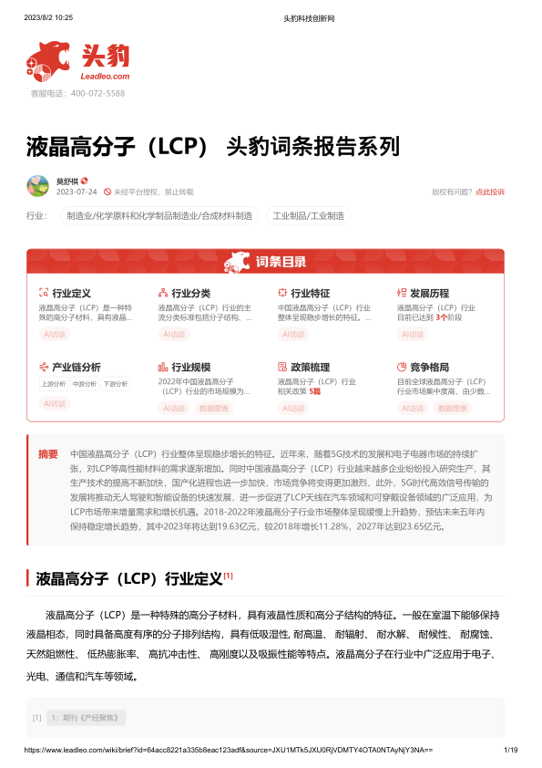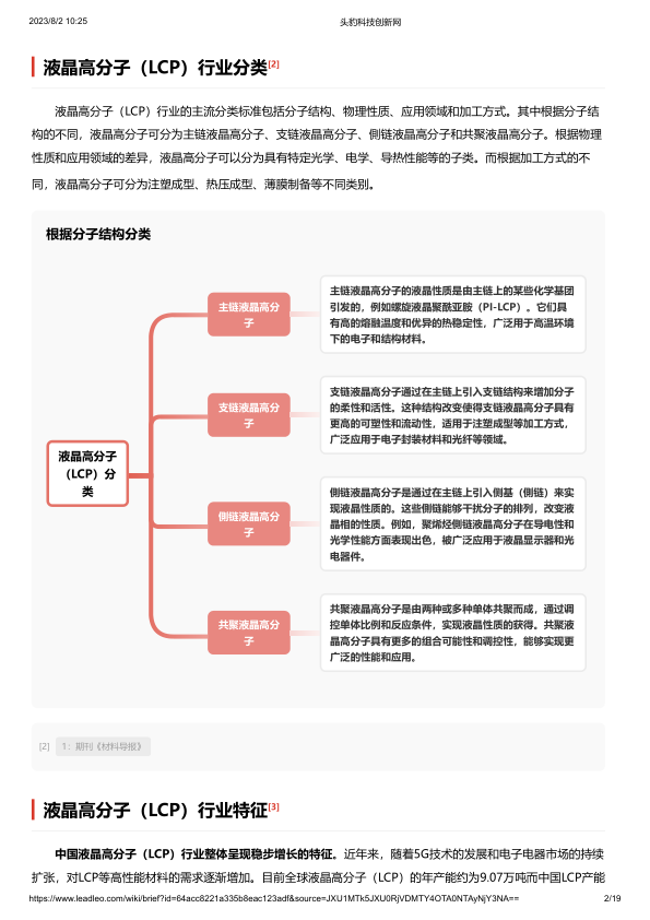 LCP行业的主流分类标准包括分子结构、物理性质、应用领域和加工方式。
