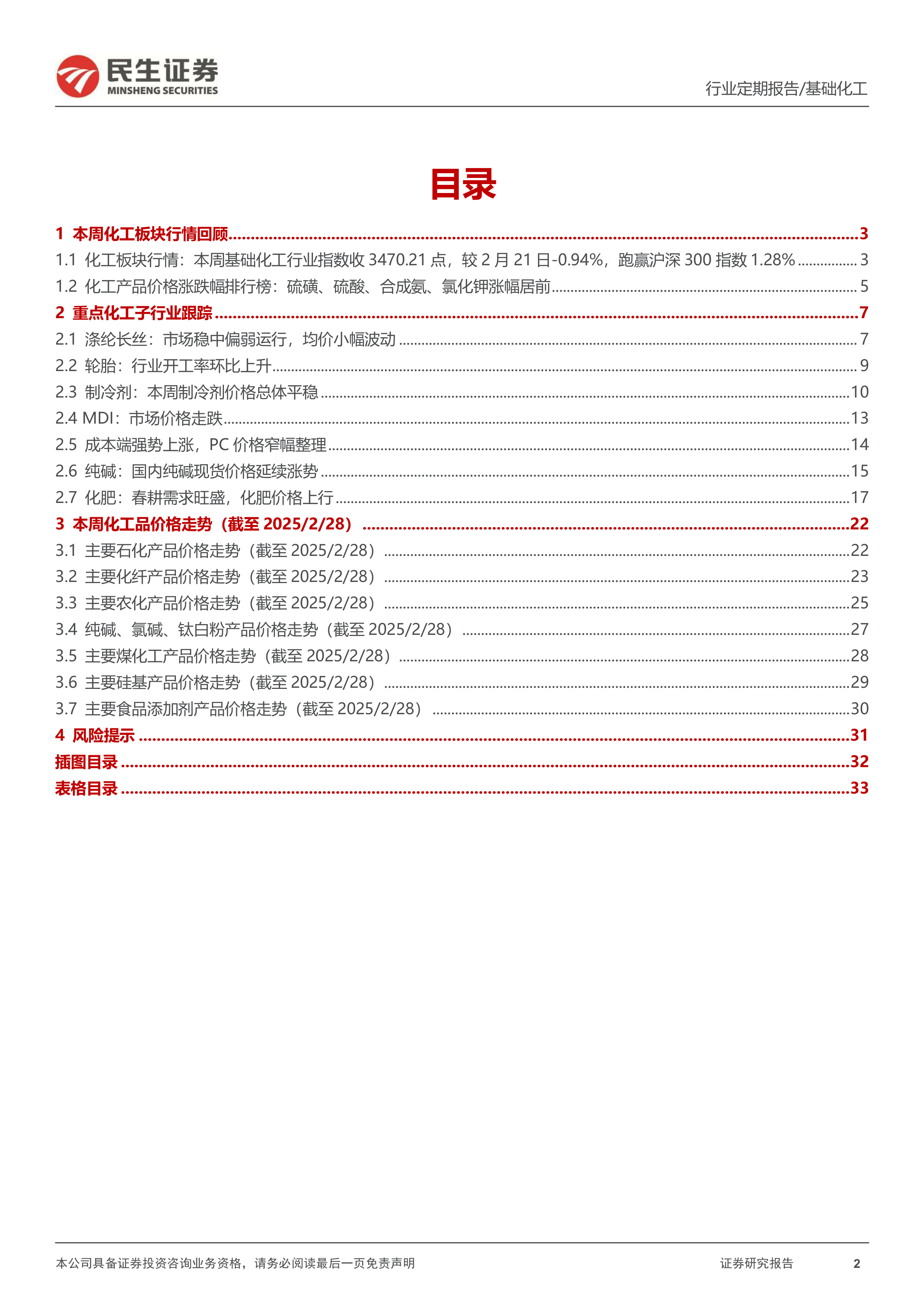 本周化工行业周报(20250224-20250302)分析了化工市场的行情和产品价格走势,并对重点子行业进行了跟踪分析。报告的核心观点如下: