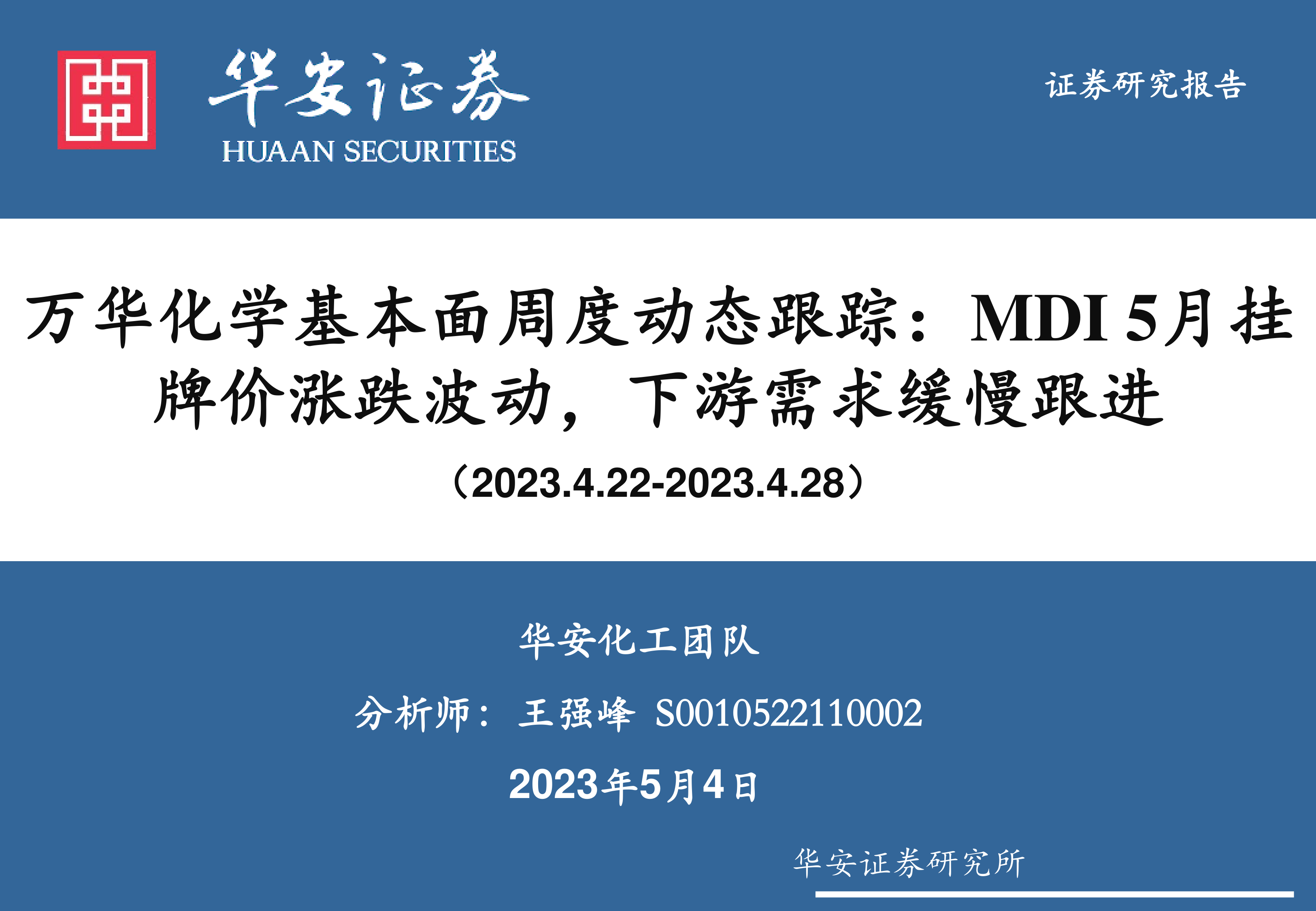 万华化学基本面周度动态跟踪:MDI5月挂牌价涨跌波动,下游需求缓慢跟进