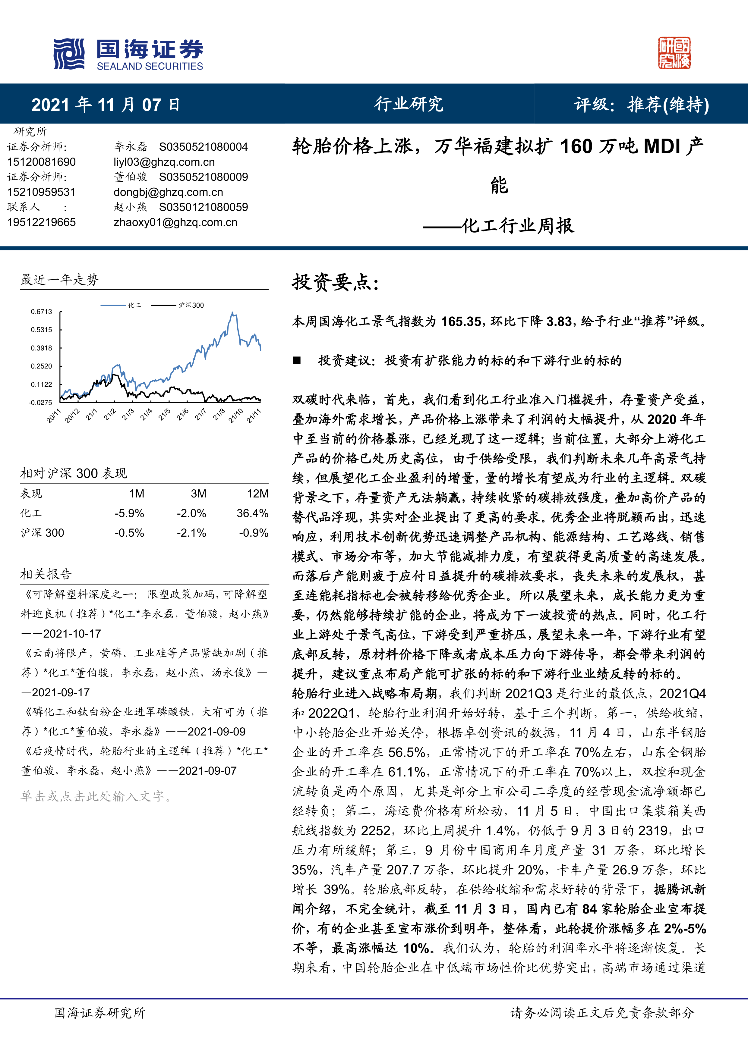 化工行业周报:轮胎价格上涨,万华福建拟扩160万吨MDI产能