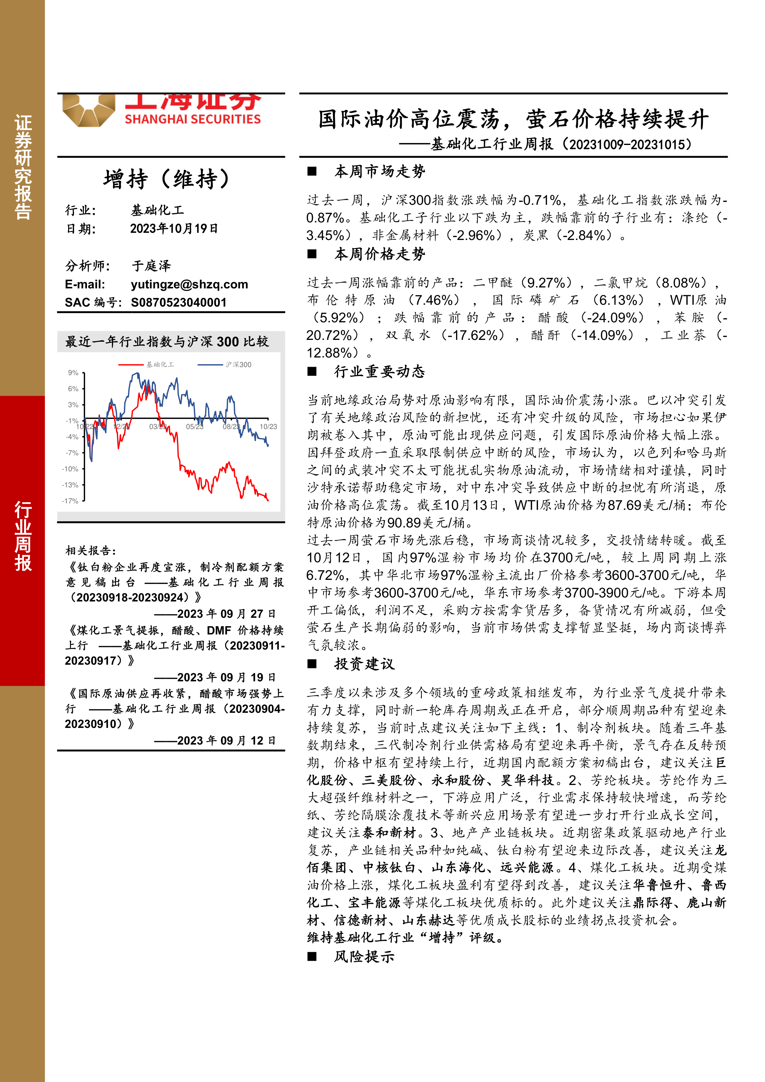 基础化工行业周报:国际油价高位震荡,萤石价格持续提升