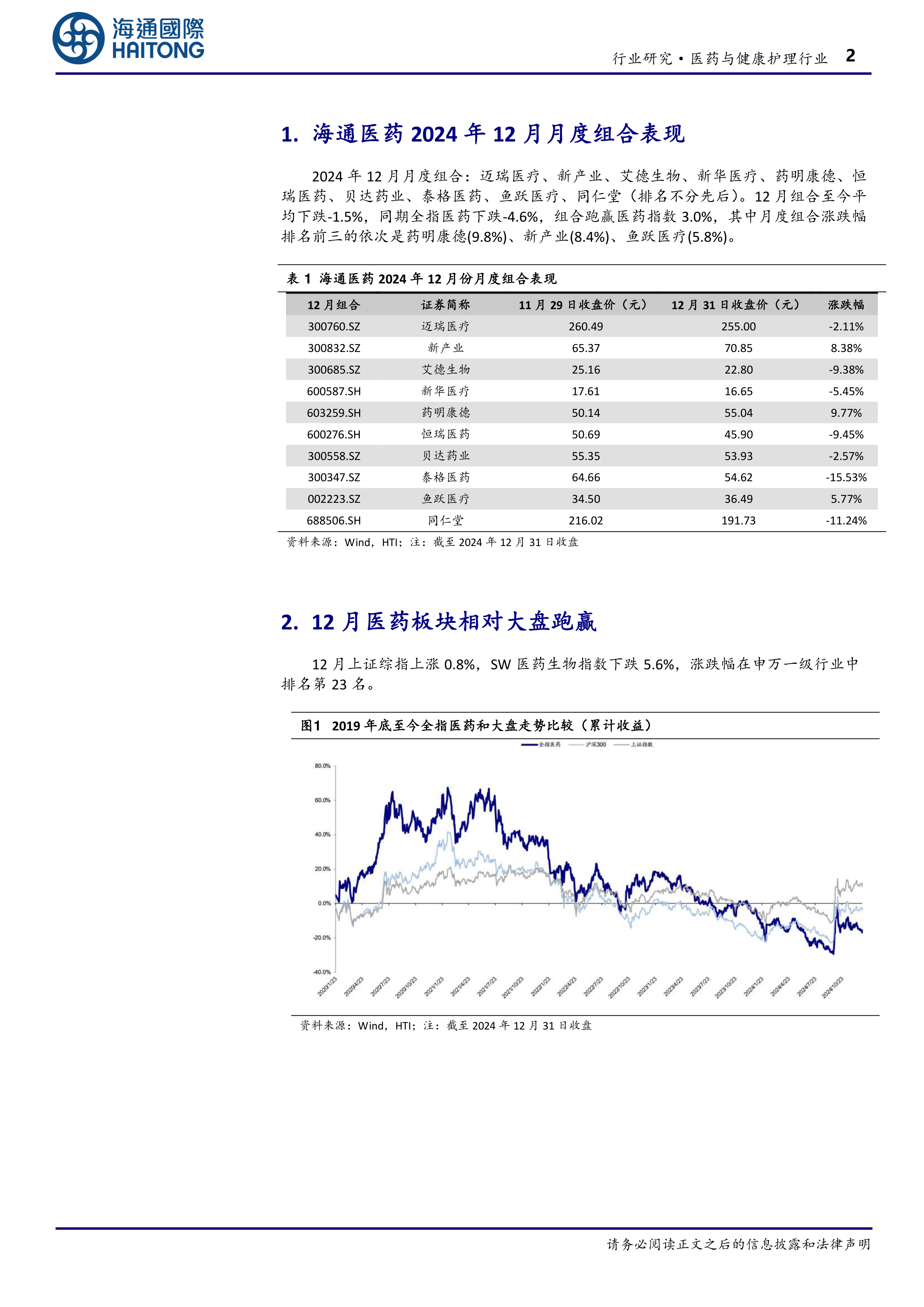 本报告对2024年12月医药与健康护理行业的市场表现进行了分析,并重点关注了以下几个方面: