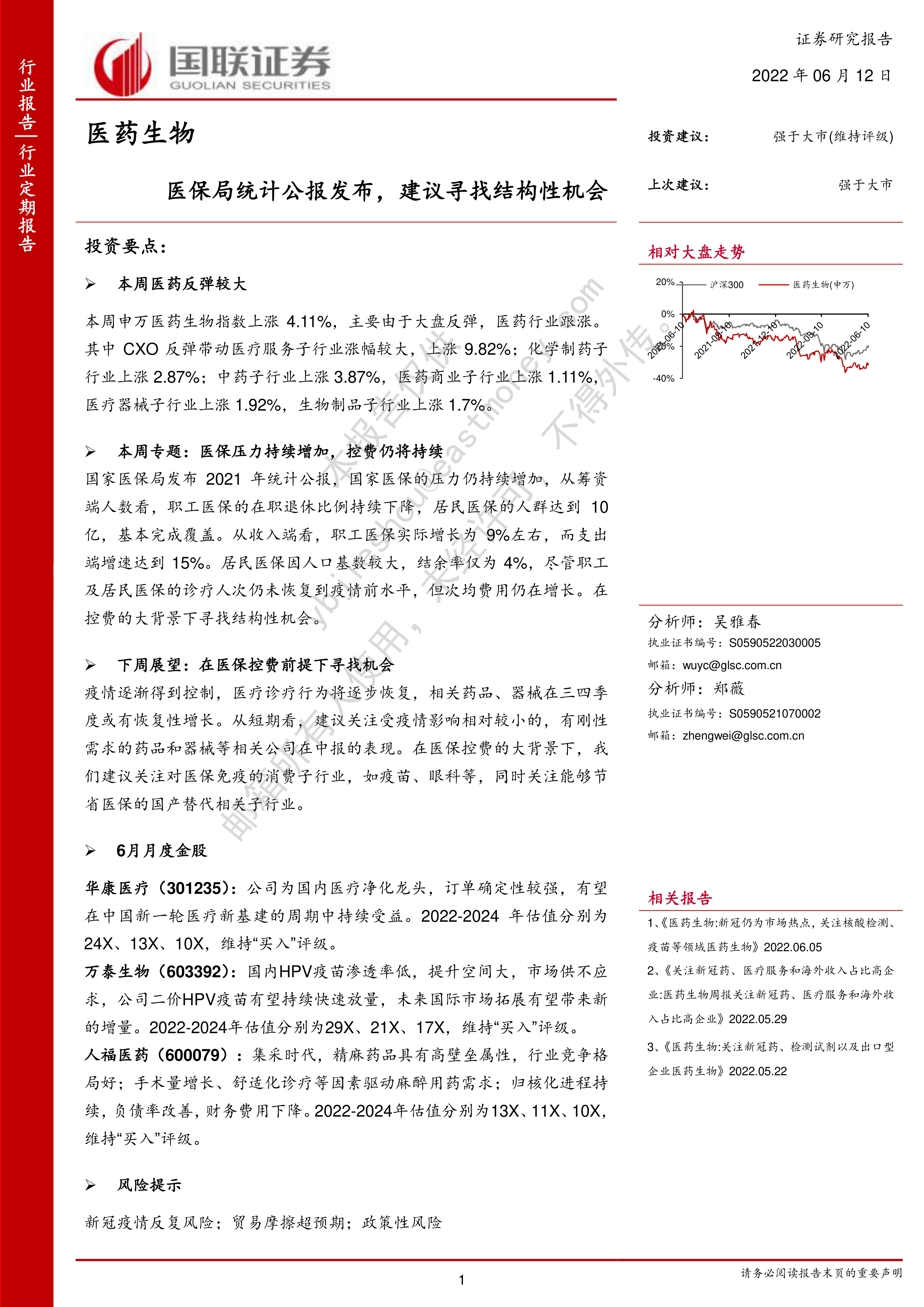 医药生物:医保局统计公报发布,建议寻找结构性机会