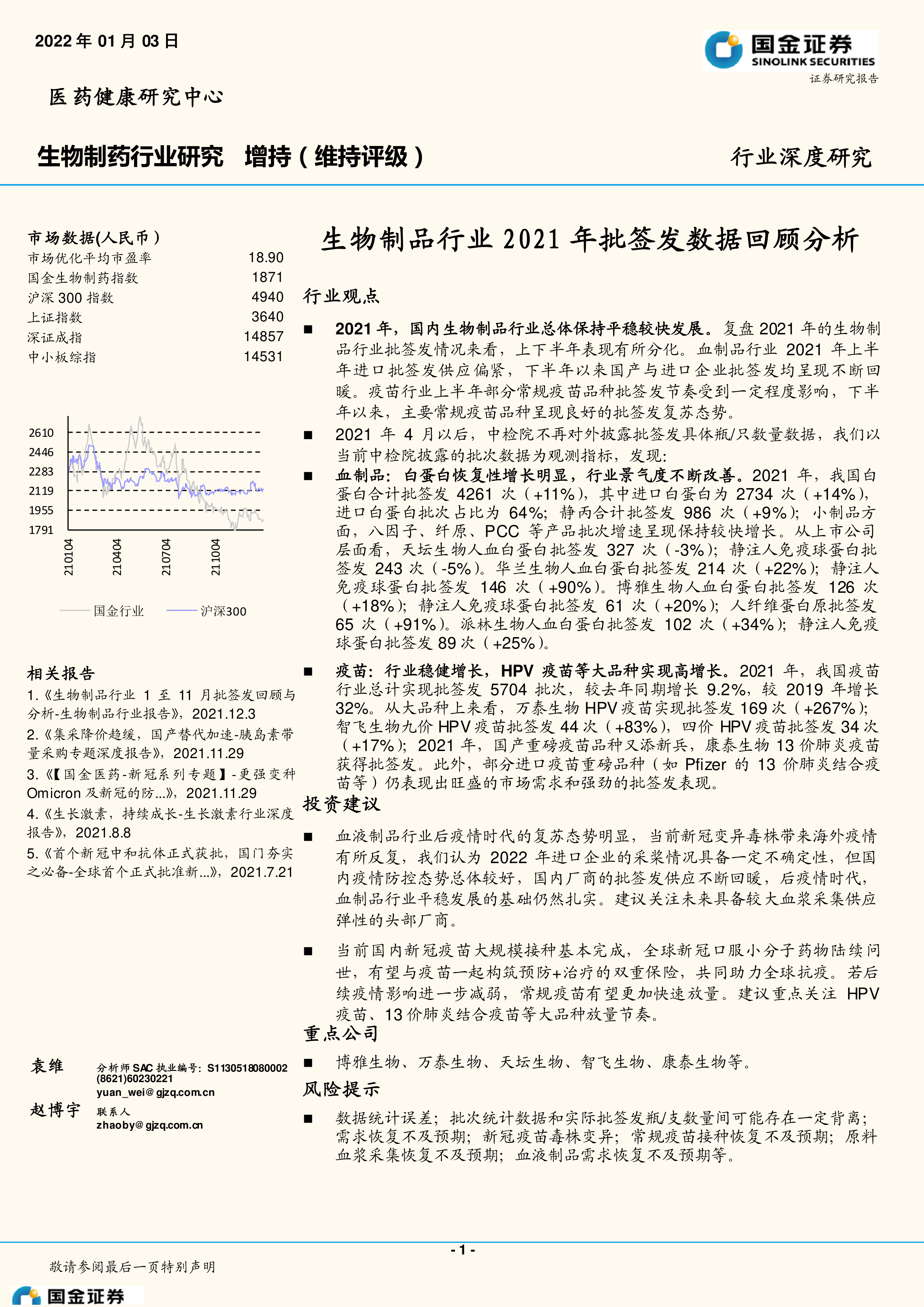 行业深度研究:生物制品行业2021年批签发数据回顾分析