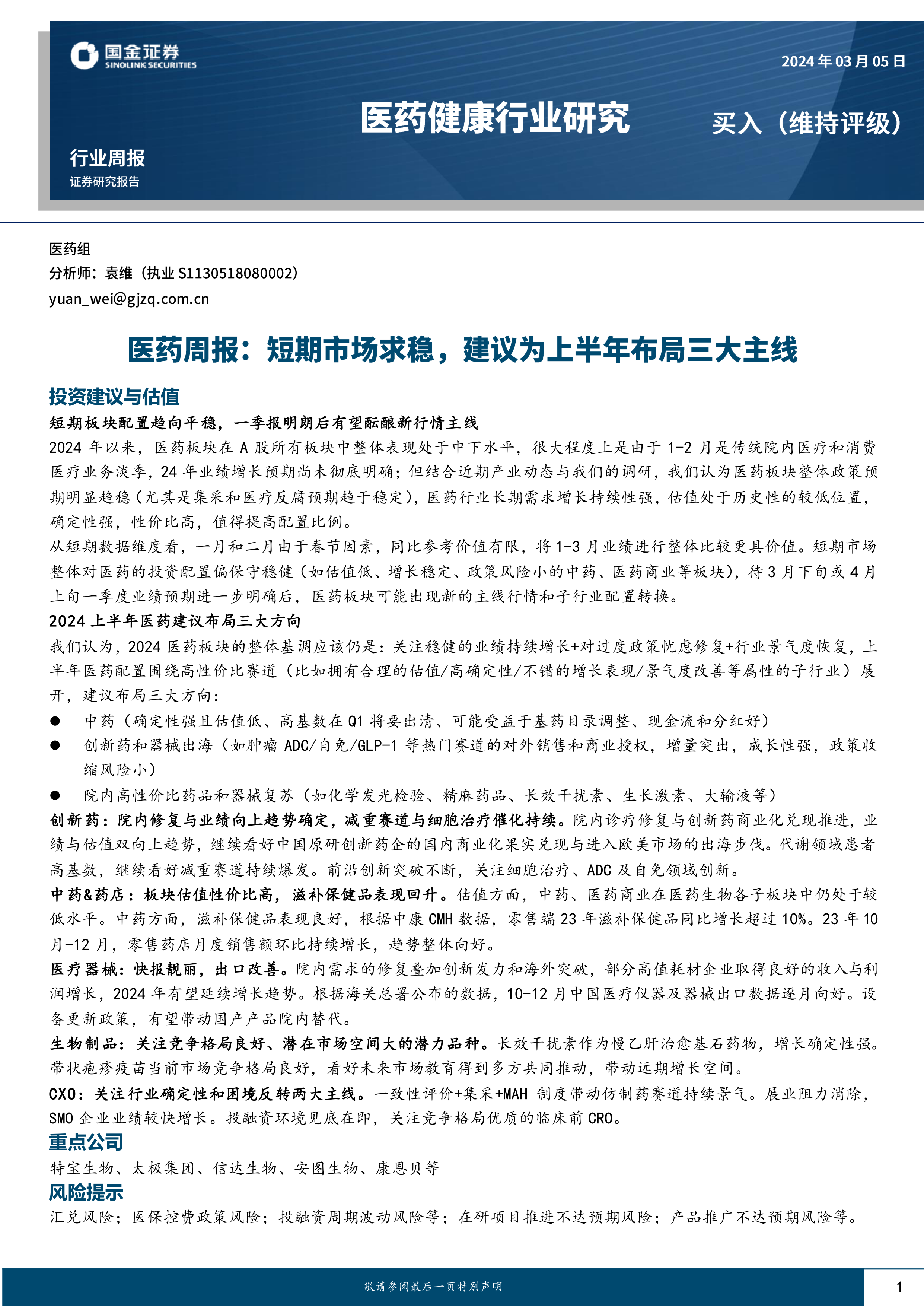 2024上半年医药建议布局三大方向