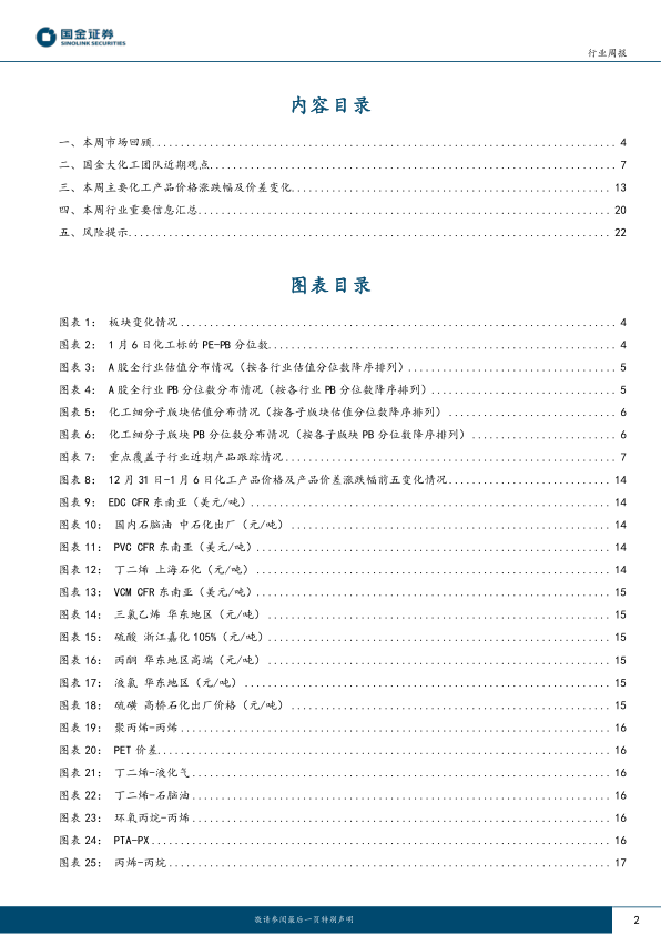 估值方面,本周化工板块估值有所修复,其中PB历史分位数为45%,PE历史分位数为13%,整体估值仍位于中枢线之下。市场方面,本周主线为新能源化工材料,相关标的强劲反弹,而基本面发生变化的标的有所承压。产品价格方面,我们观察到部分产品的价差分位数已经位于历史较低水平,但同时需要注意的是中国化工产品价格指数历史分位数仍处于中枢水平-为45%,往后看,建议关注原材料端的价格变化,如果其价格进一步下行,产品价格仍有下行的风险。量方面,我们这周重点调研了电子材料产业链,部分企业反馈2022Q4以及近期需求有边际改善之势,站在当下,我们更建议关注需求端较为确定的方向,比如:光伏赛道的卡脖子材料。投资方面,建议重点关注景气赛道的卡脖子环节以及需求刚性方向。