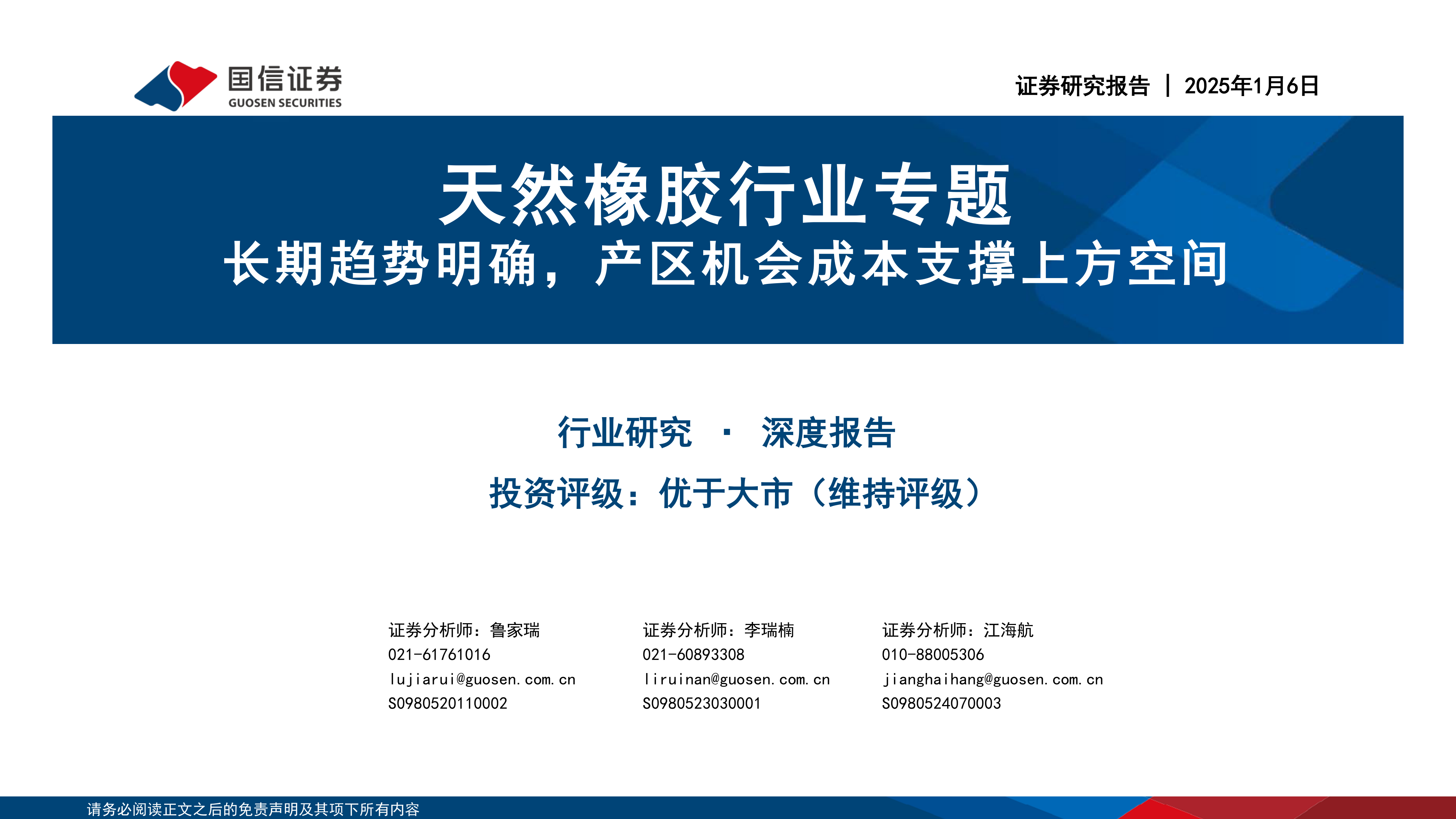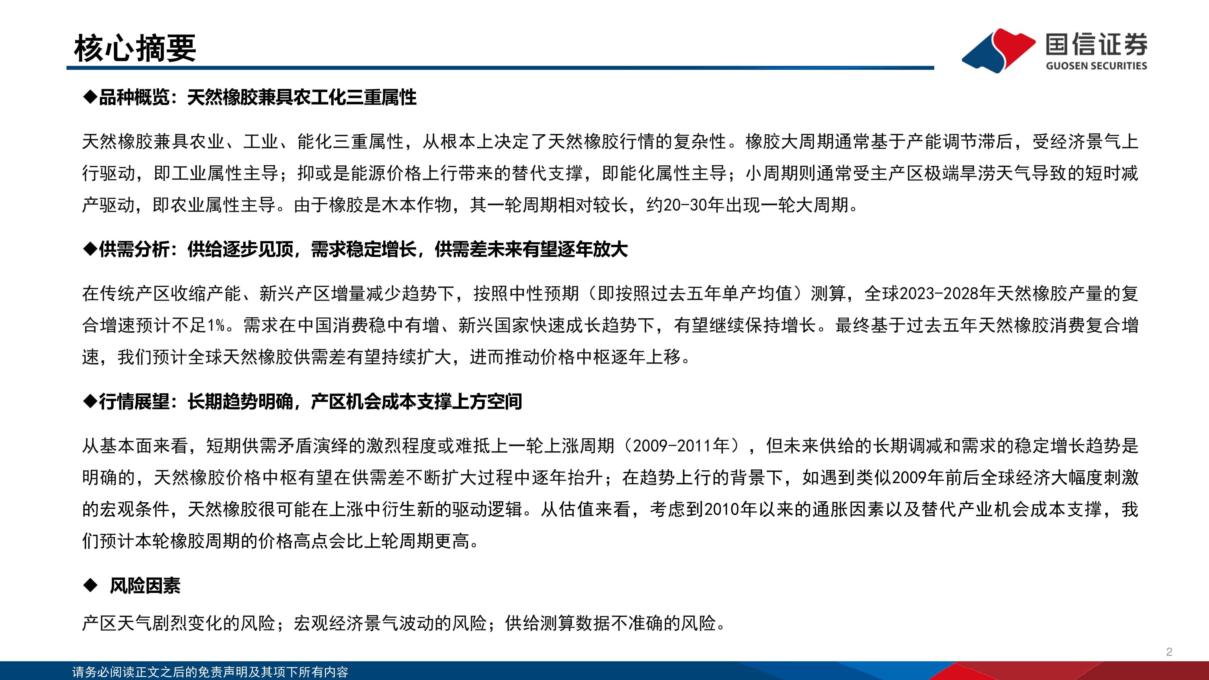 本报告深入分析了天然橡胶行业的长期趋势,核心观点如下: