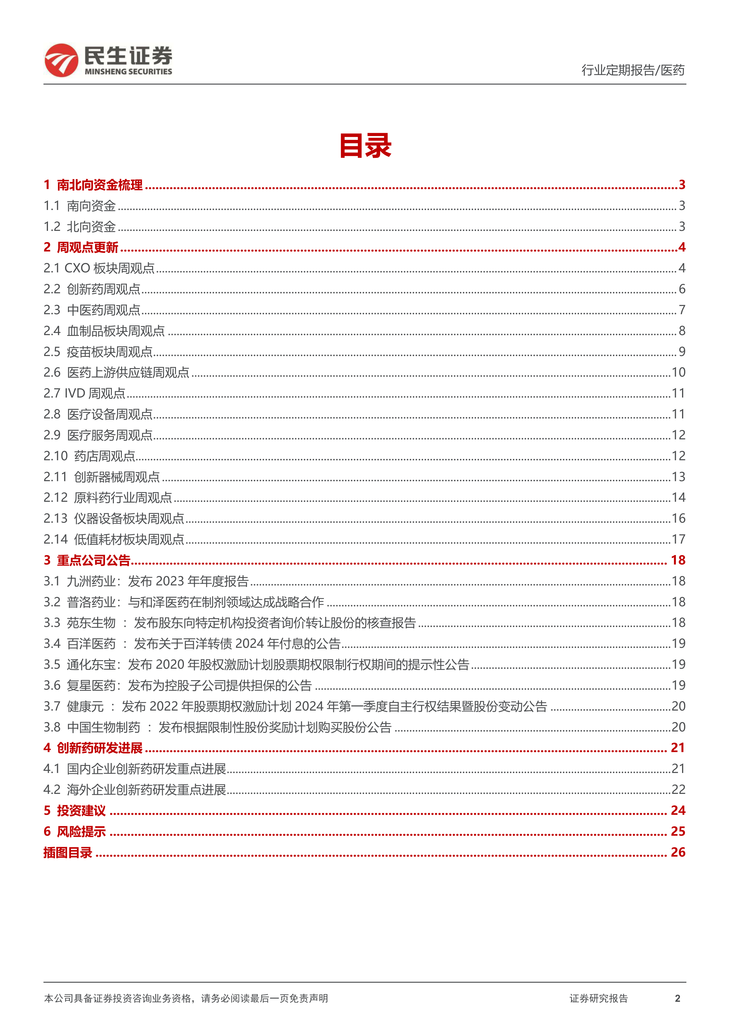 风险提示:集采压力大于预期风险;产品研发进度不及预期风险;竞争加剧风险;政策监管环境变化风险;药物研发服务市场需求下降的风险。