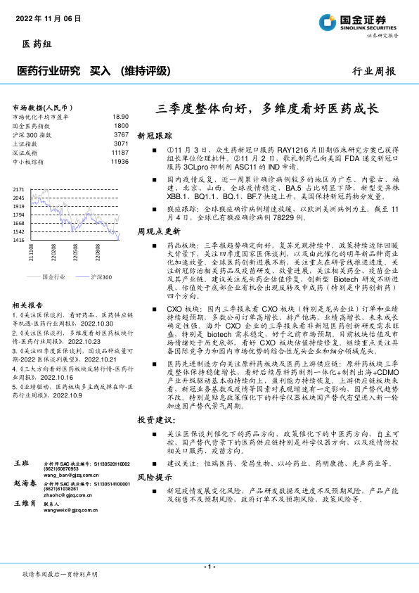 本报告核心观点指出,2022年第三季度医药行业整体呈现向好趋势,市场复苏迹象明显。在政策边际回暖的大背景下,创新药研发进展不断,新品种商业化加速放量,为行业增长注入强劲动力。同时,CXO板块订单与业绩持续超预期,医药上游供应链迎来国产替代的发展机遇期。