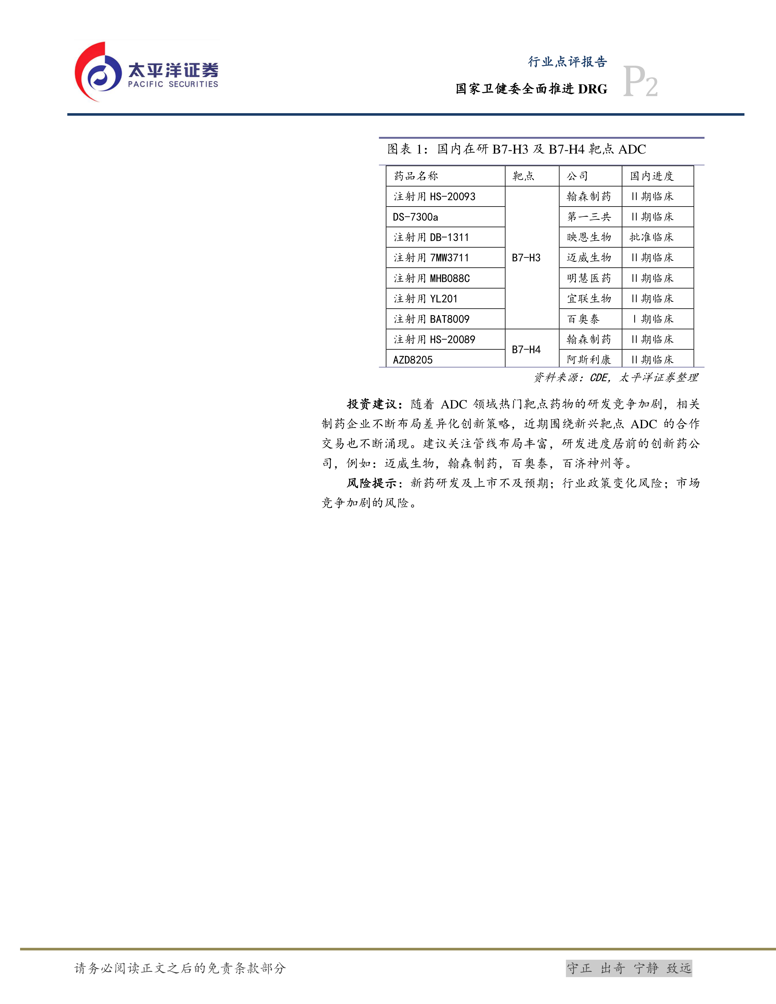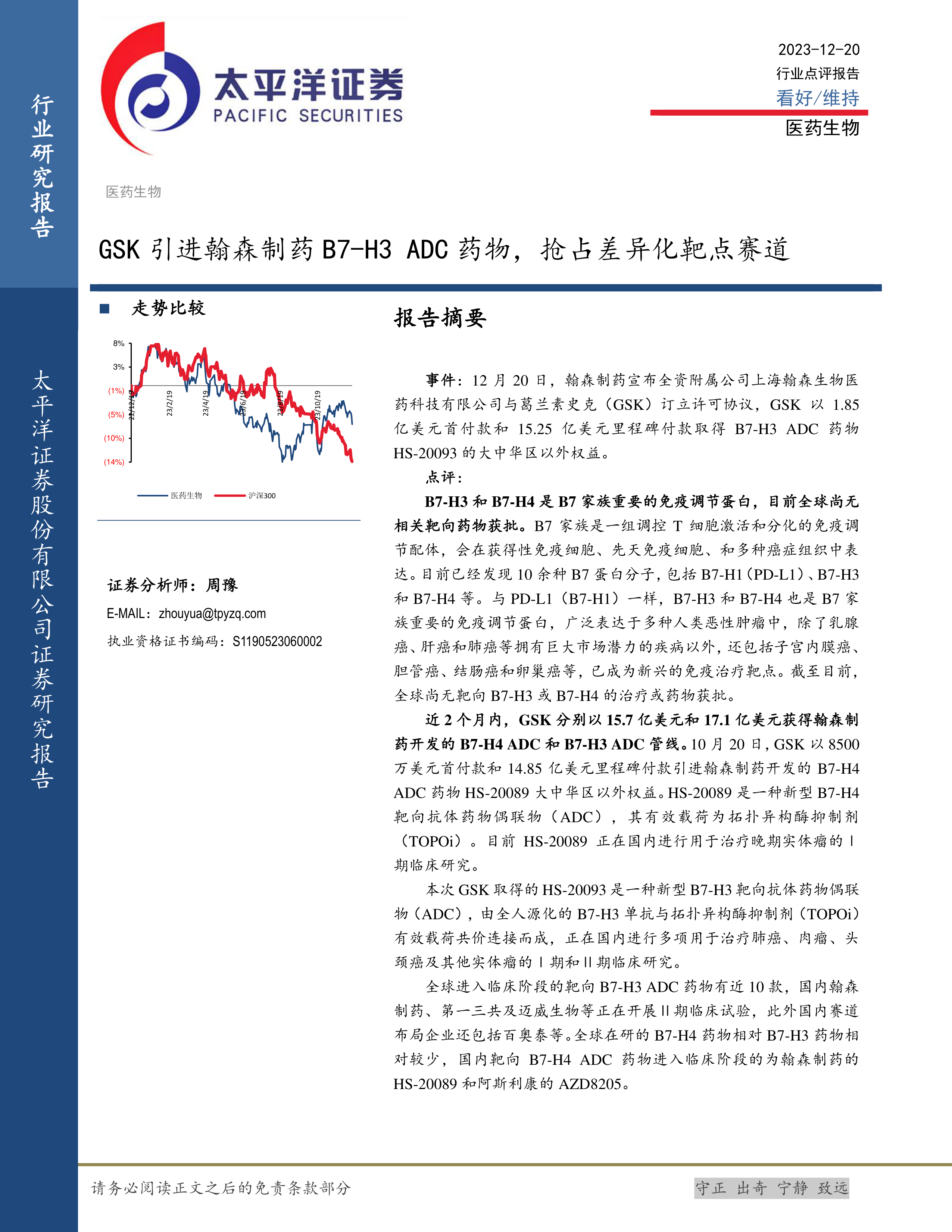 医药生物行业点评报告:GSK引进翰森制药B7-H3 ADC药物,抢占差异化靶点赛道