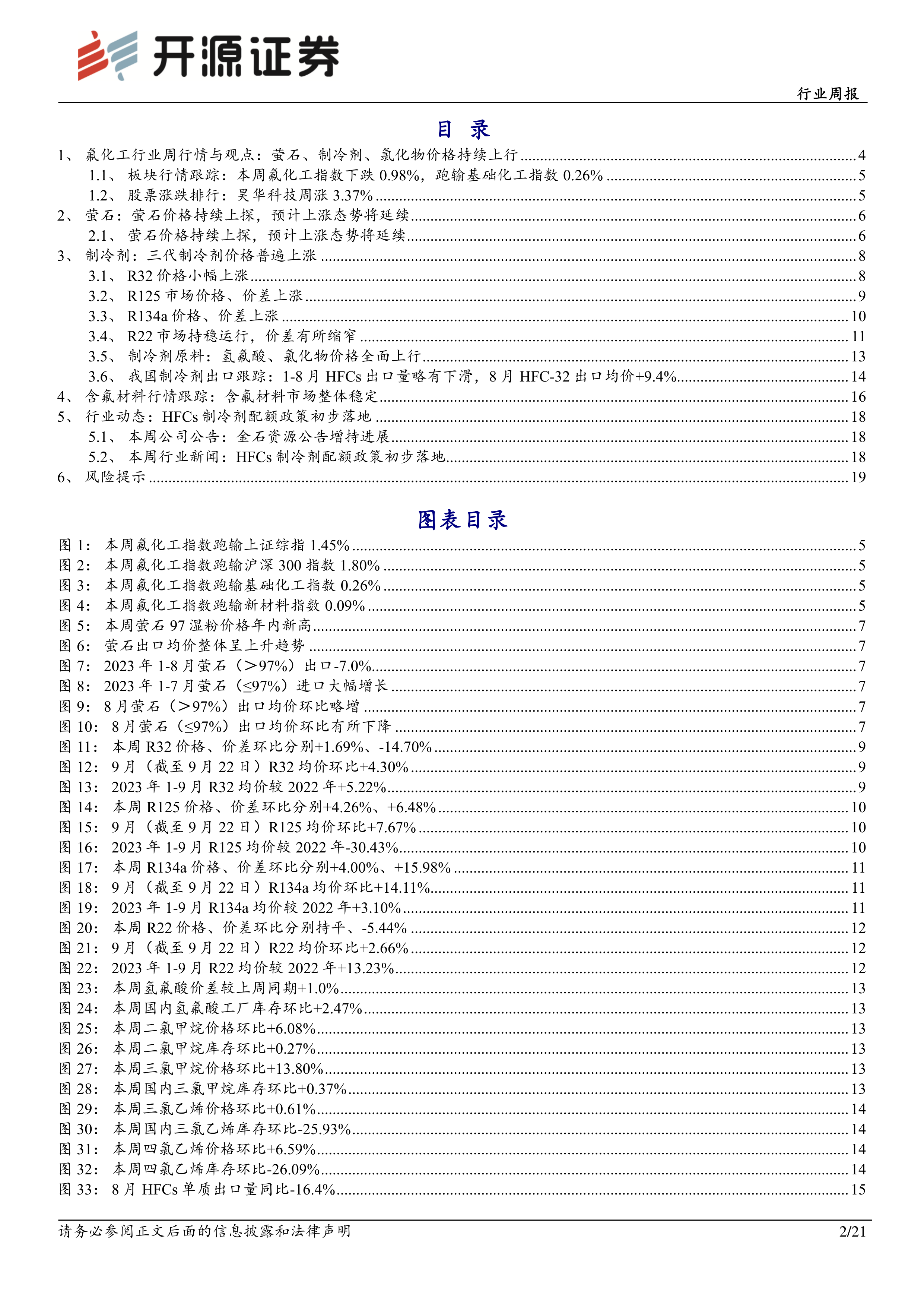 氟化工周观点:萤石、制冷剂、氯化物价格持续上行