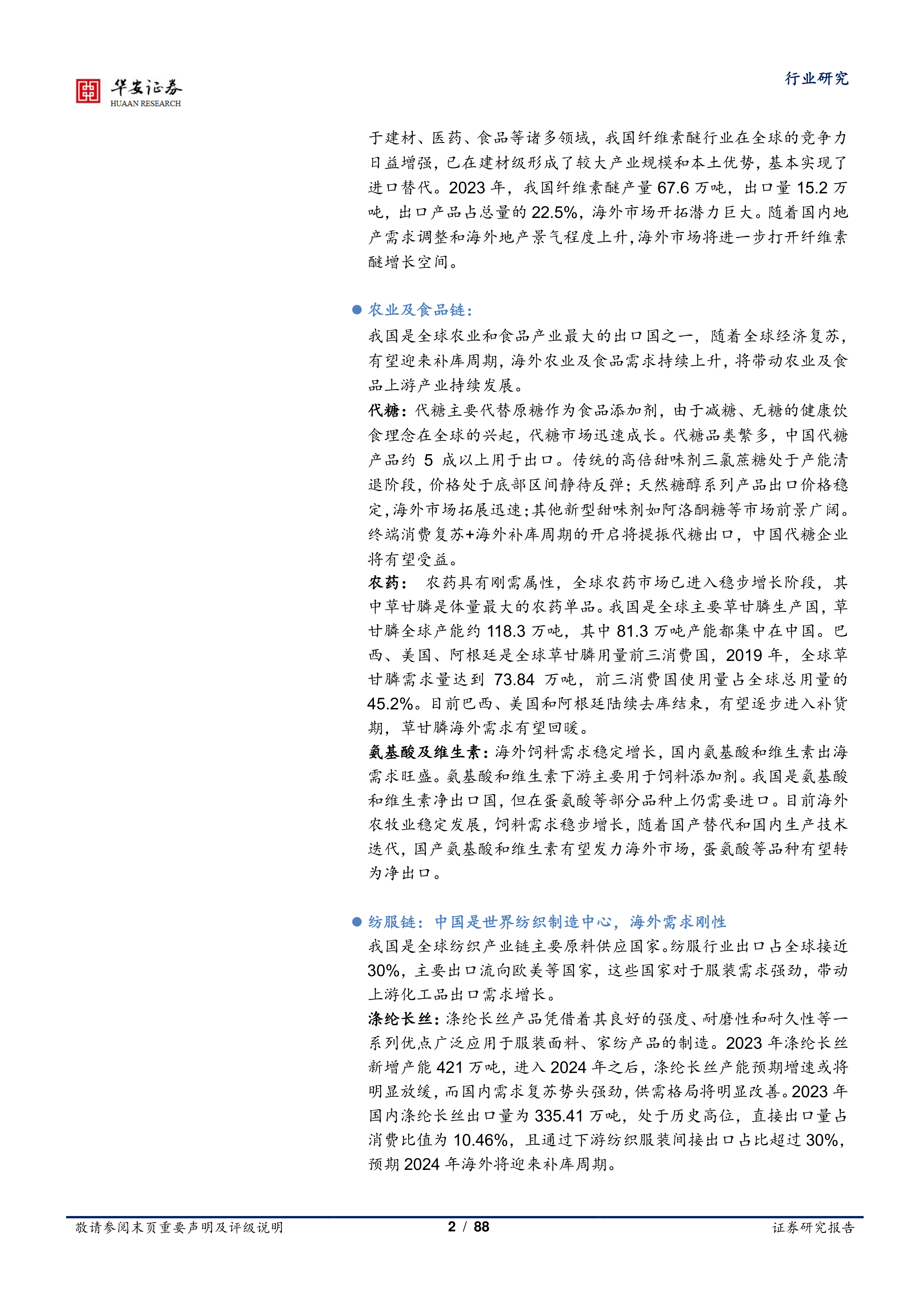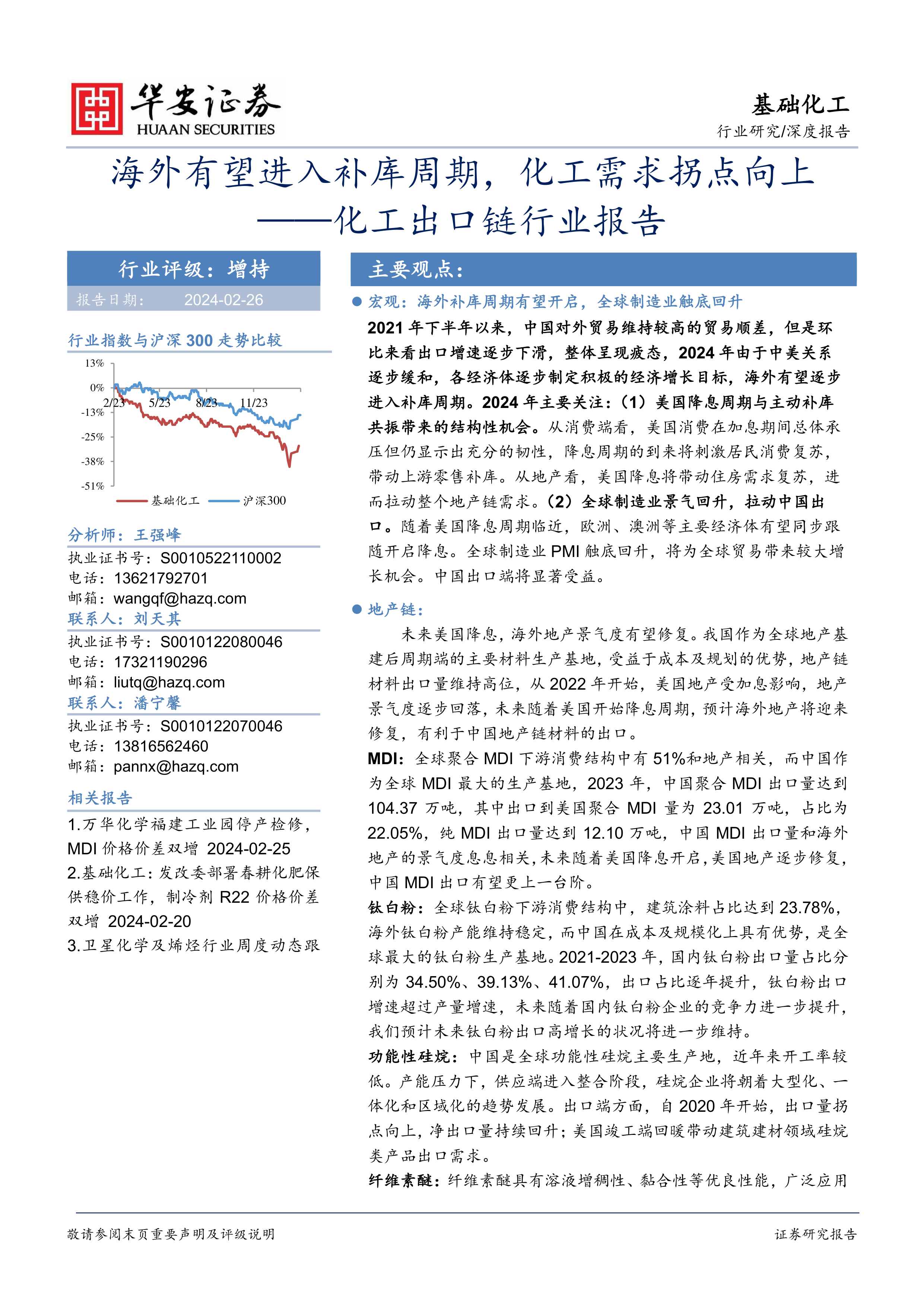 我们持续看好化工2024年出口链投资机会。