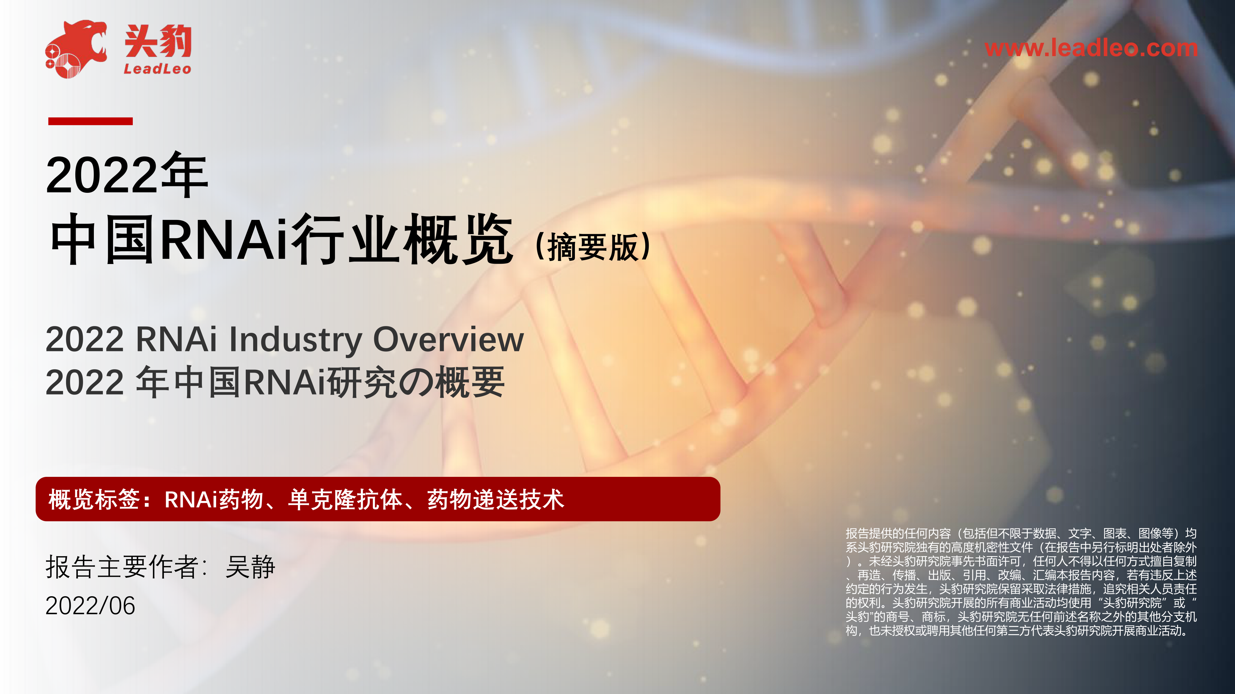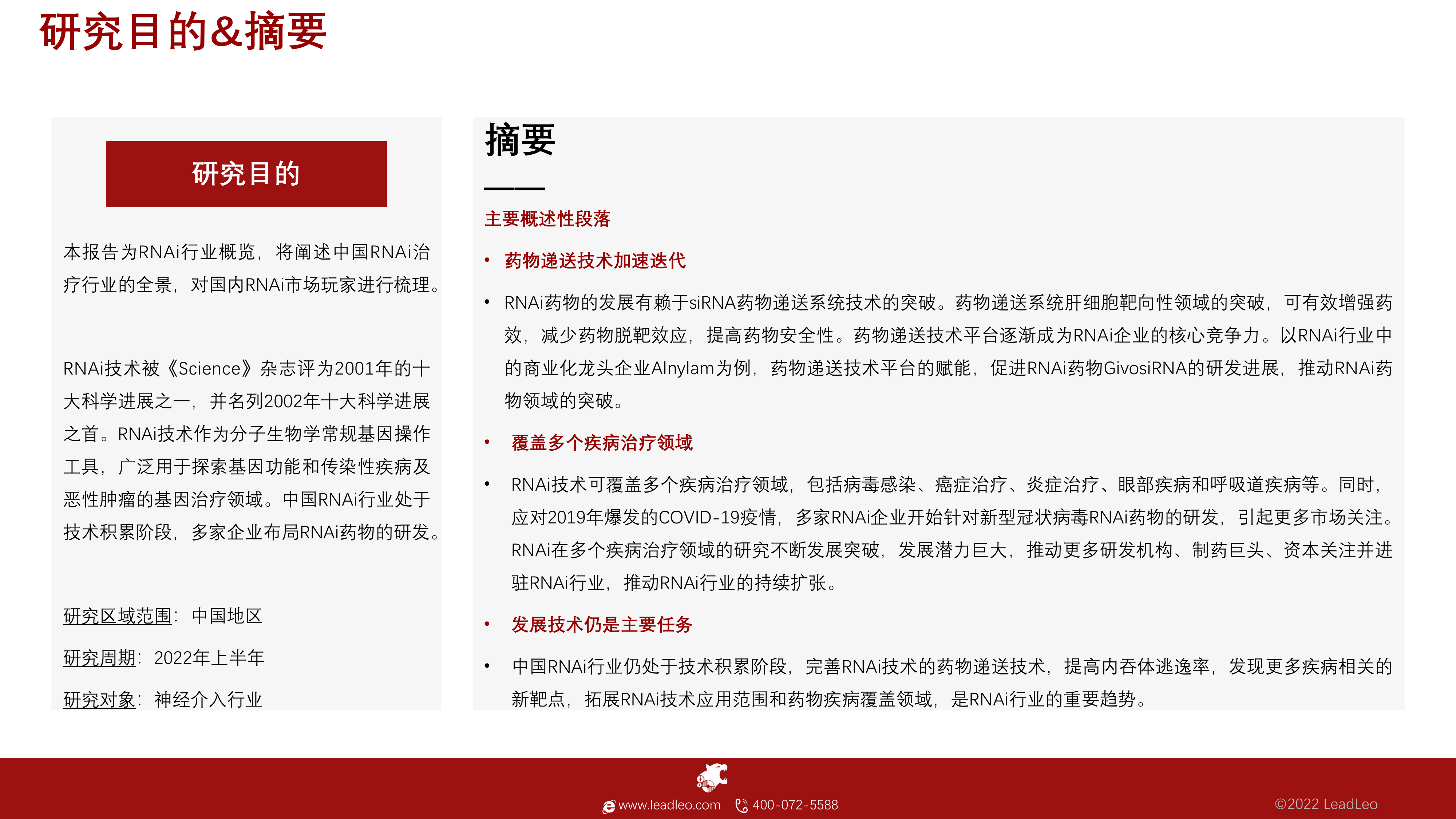 2022年中国RNAi行业概览(摘要版)