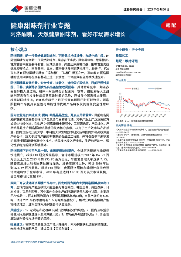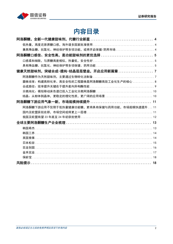 风险提示:1、宏观经济波动和下游行业周期波动的风险;2、国内及欧盟获批使用阿洛酮糖进度不及预期的风险;3、市场竞争加剧的风险;4、新型健康甜味剂替代市场份额的风险。