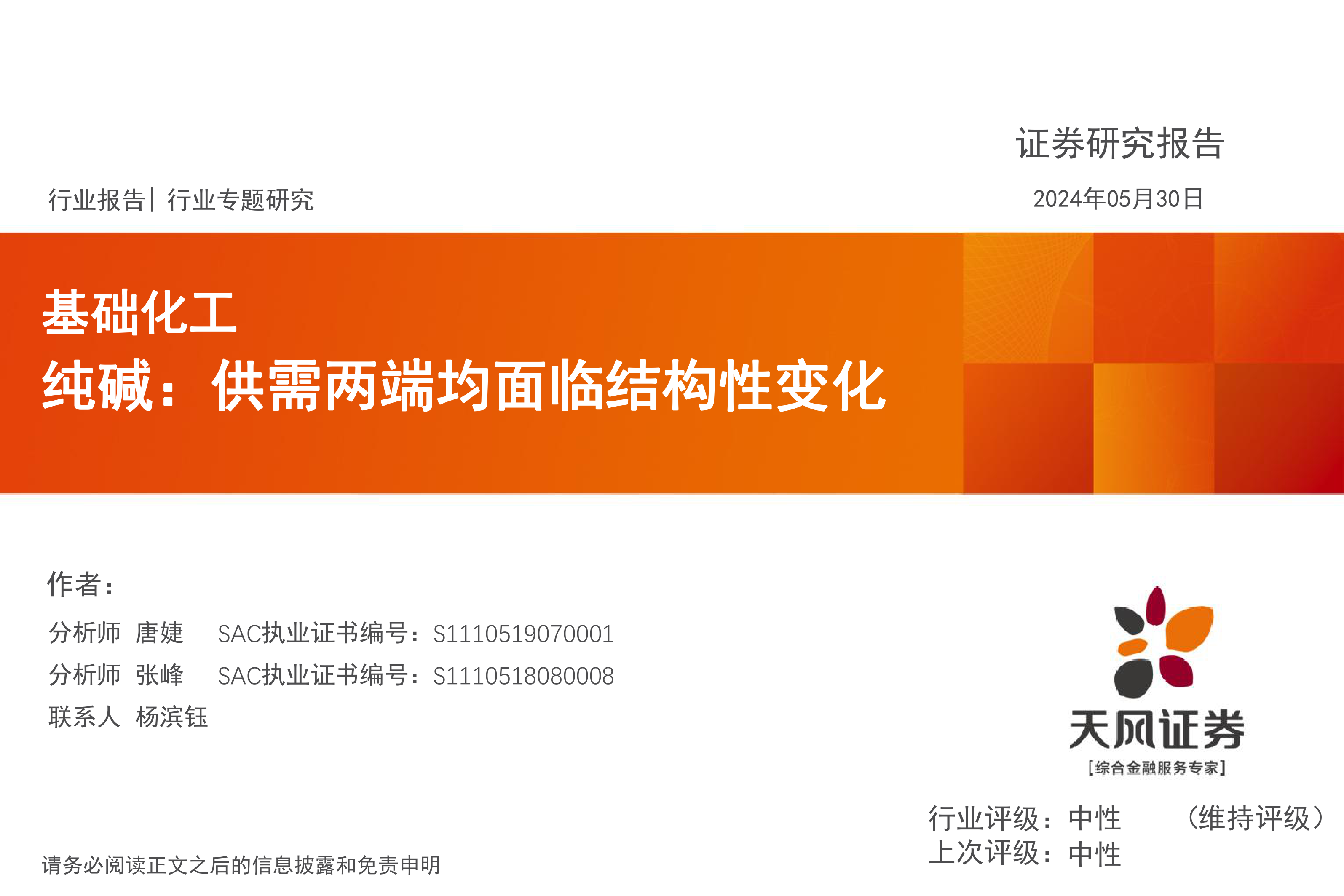 风险提示:原材料价格大幅波动风险;地缘政治冲突风险;安全环保风险;本文纯碱行业供需平衡表测算具有一定主观性,具体数字以实际发生为主。