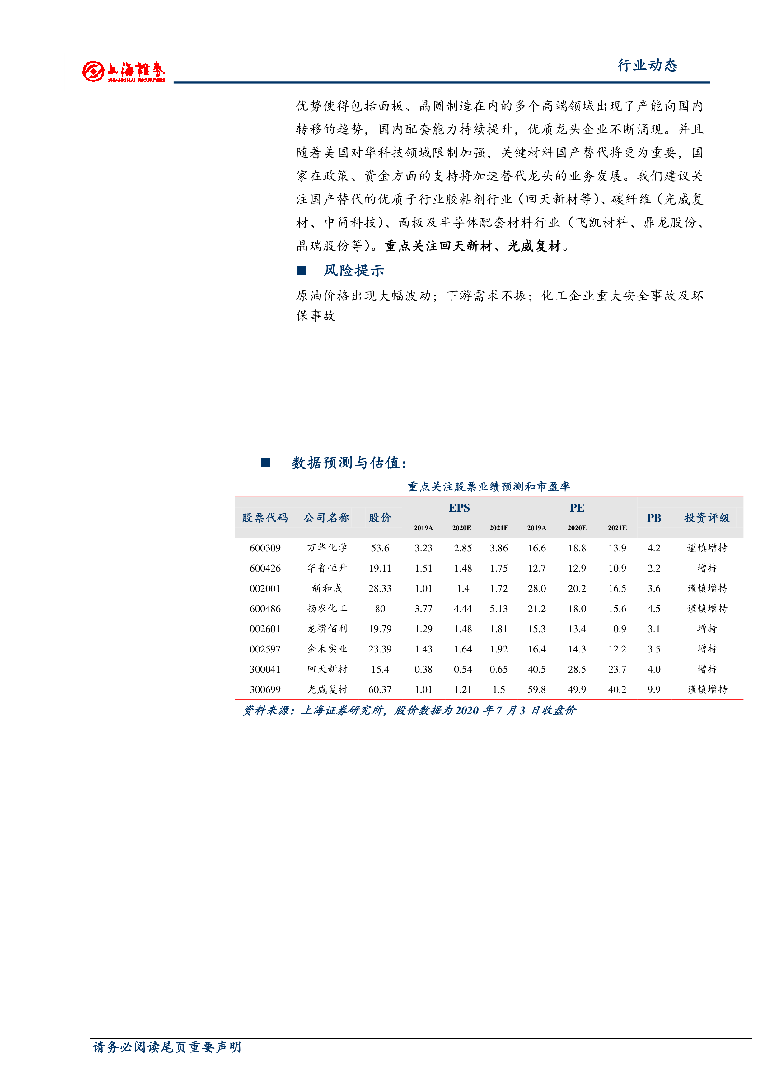 本报告分析了近期化工行业的市场动态,重点关注了油价、供需关系、产品价格变化以及相关公司的业绩情况。报告强调了在油价企稳和周期回暖的背景下,产业链一体化和近消费端龙头企业的投资价值,以及在进口替代加速趋势下,新材料领域龙头企业的投资机会。同时,报告也提示了原油价格波动、下游需求不振以及化工企业安全环保事故等风险。