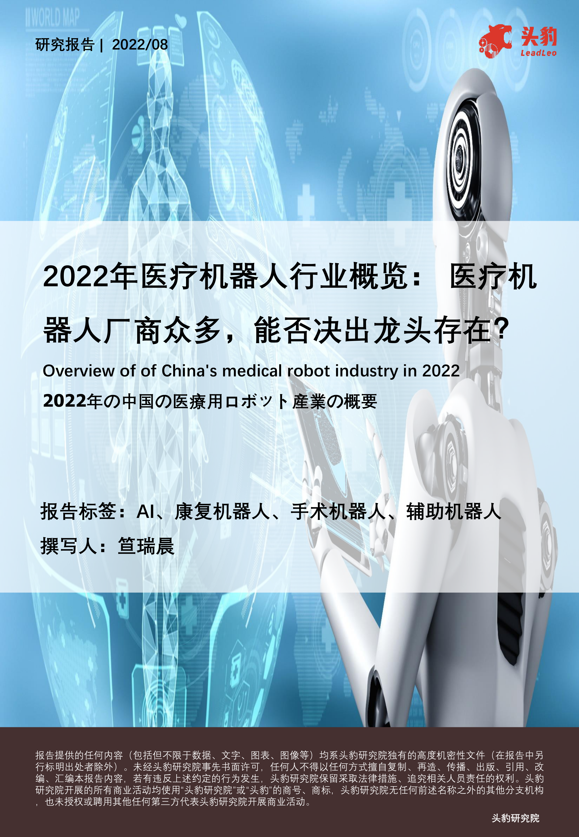2022年医疗机器人行业概览:医疗机器人厂商众多,能否决出龙头存在(摘要版)