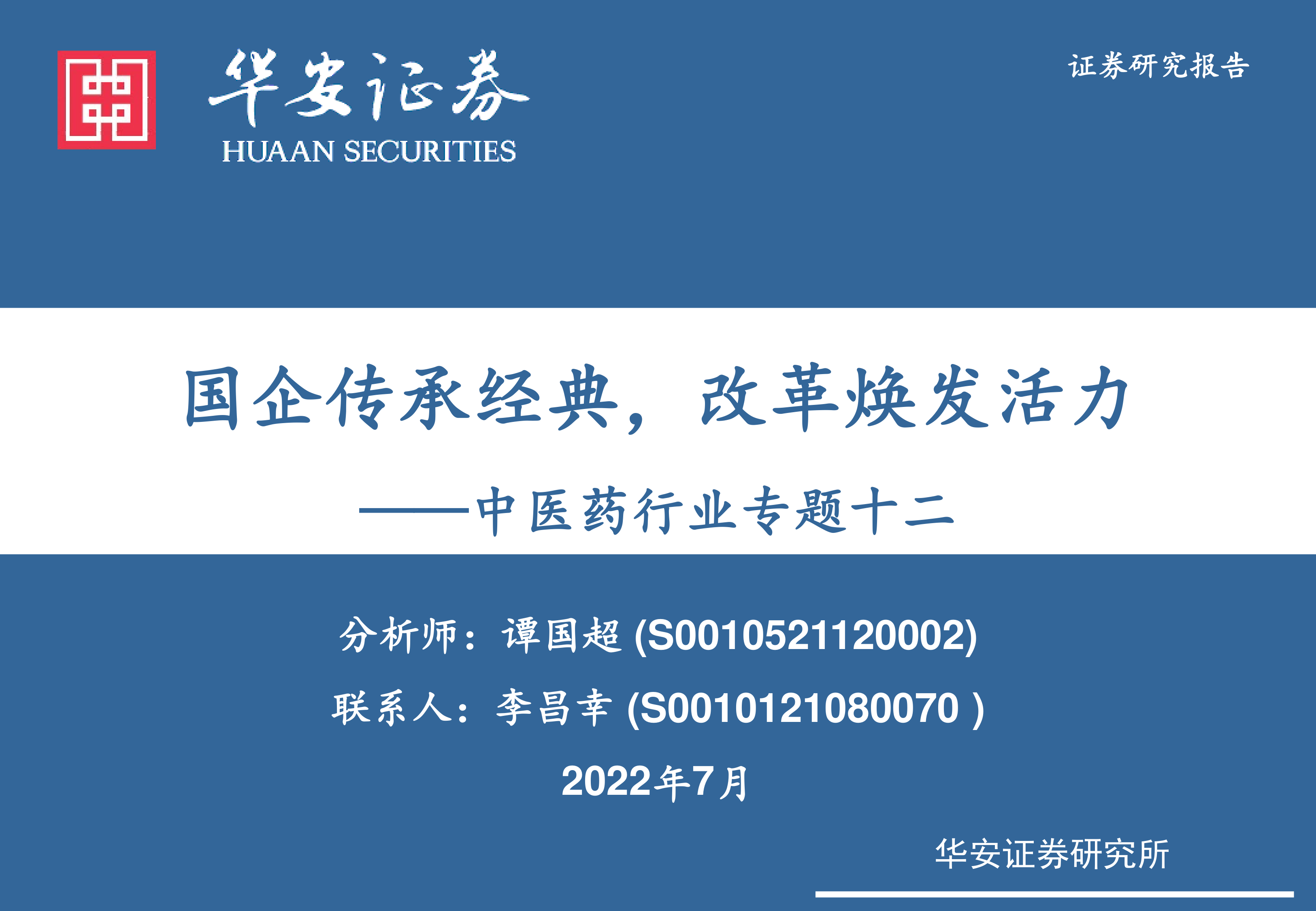 中医药行业专题十二:国企传承经典,改革焕发活力