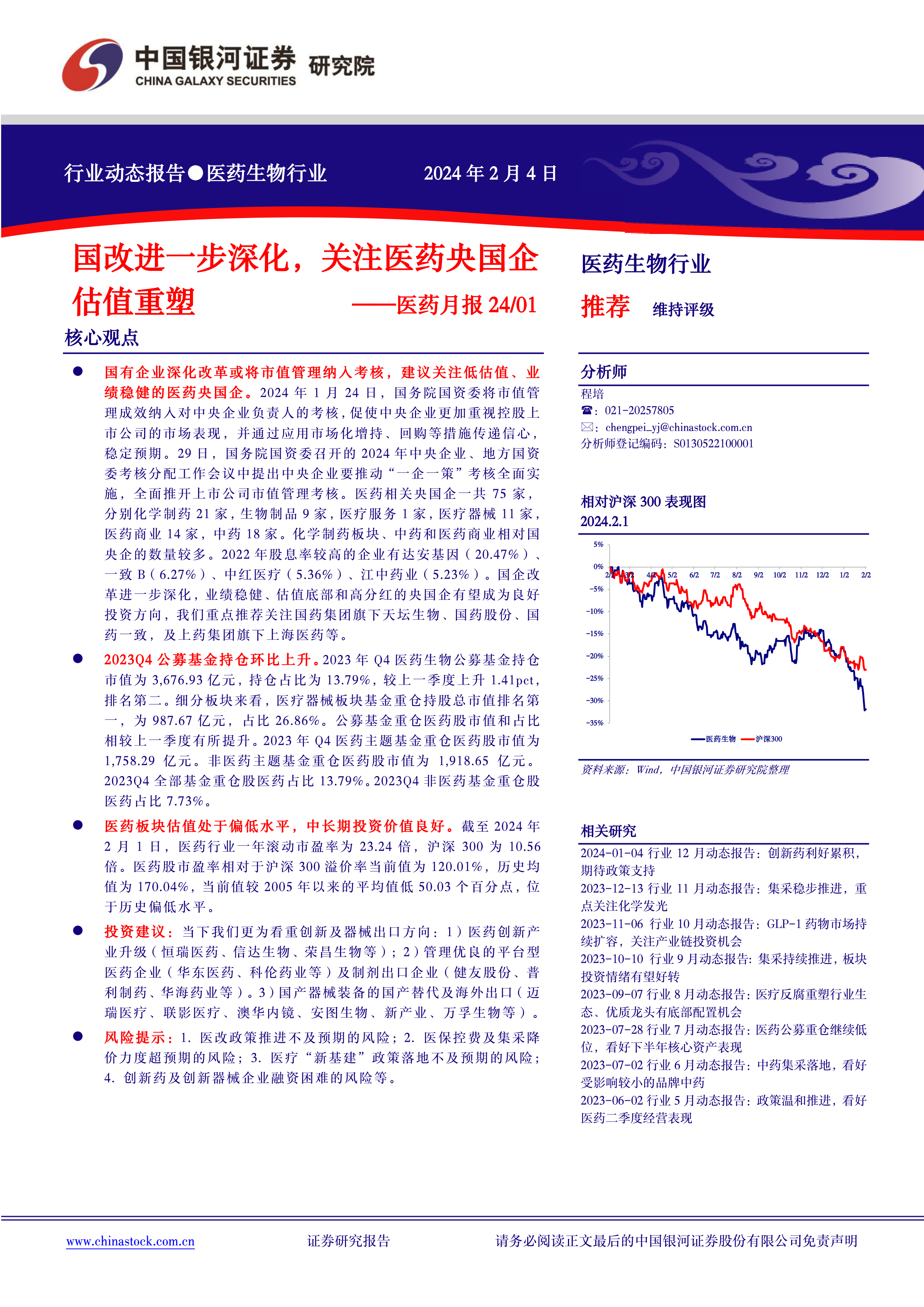 医药月报24/01:国改进一步深化,关注医药央国企估值重塑
