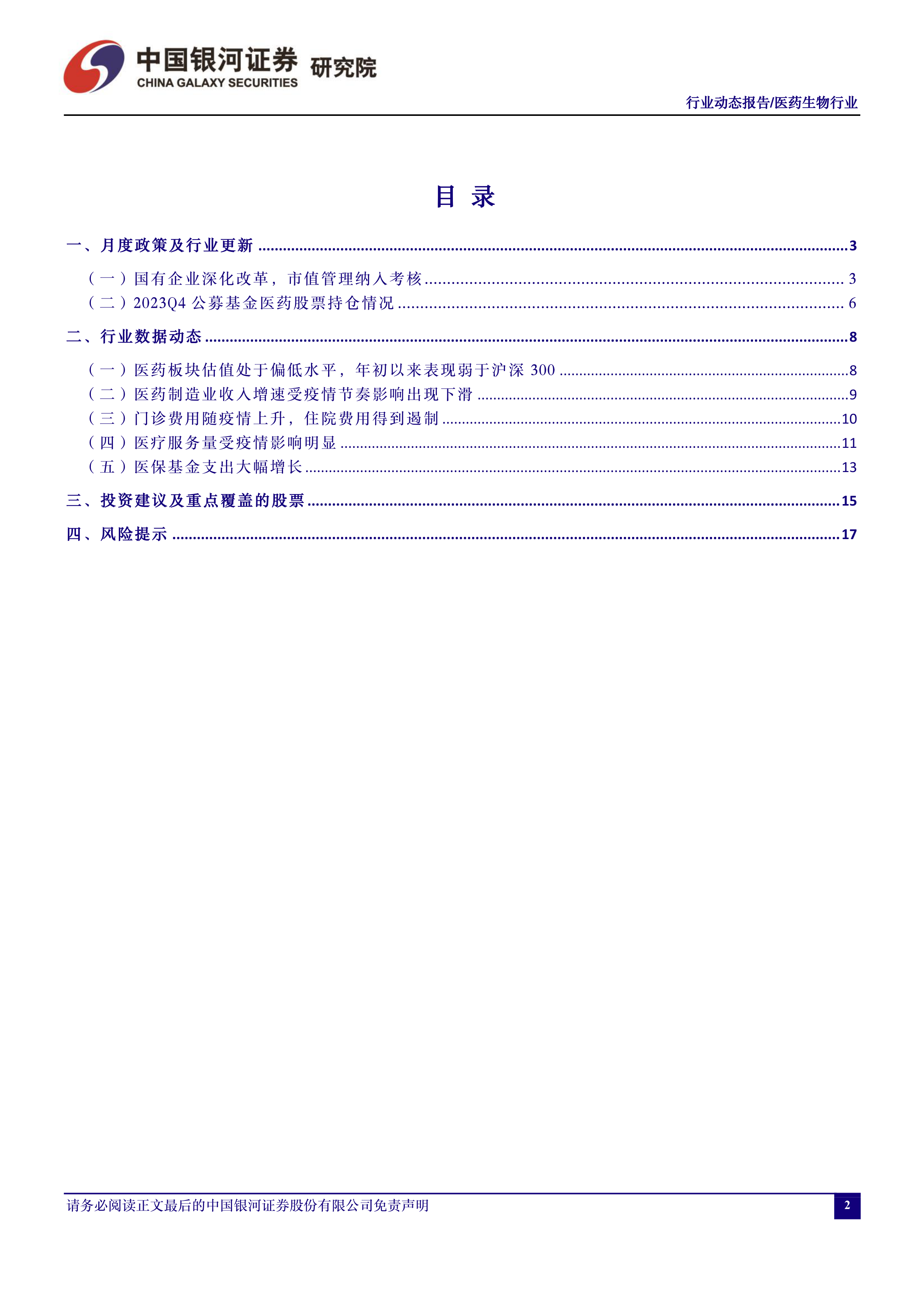 风险提示:1.医改政策推进不及预期的风险;2.医保控费及集采降价力度超预期的风险;3.医疗“新基建”政策落地不及预期的风险;4.创新药及创新器械企业融资困难的风险等。