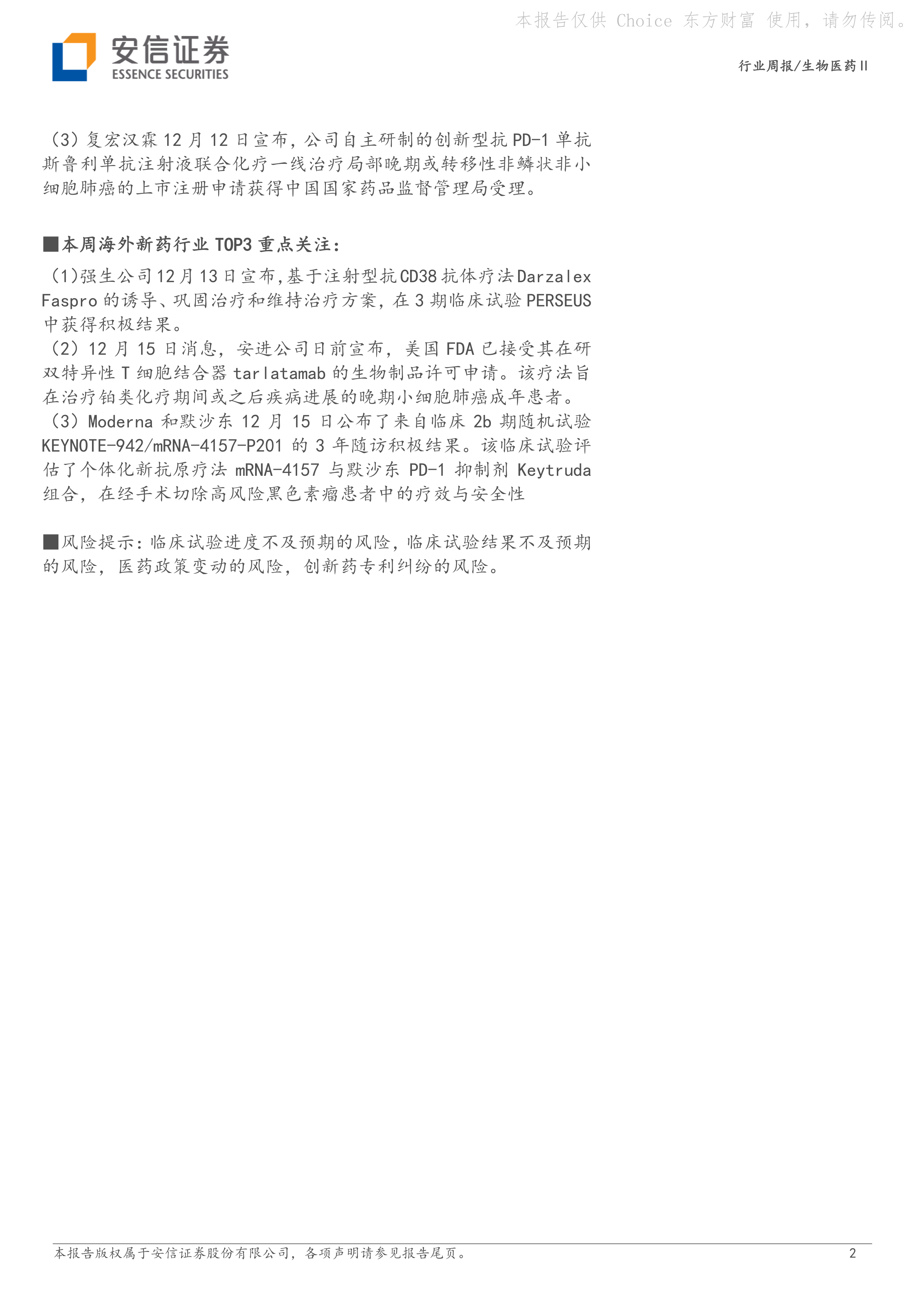 风险提示:临床试验进度不及预期的风险,临床试验结果不及预期的风险,医药政策变动的风险,创新药专利纠纷的风险。