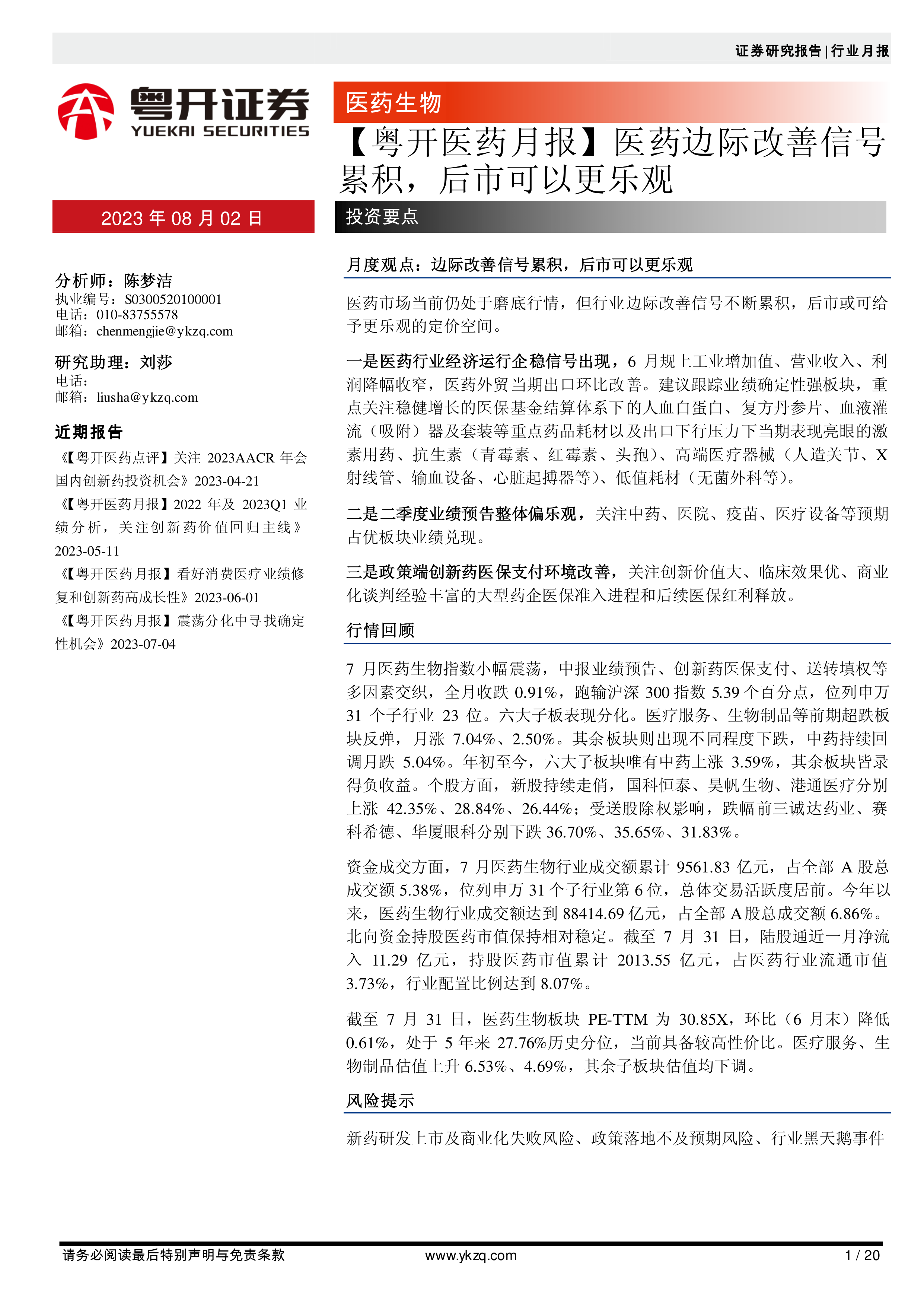 【粤开医药月报】医药边际改善信号累积,后市可以更乐观