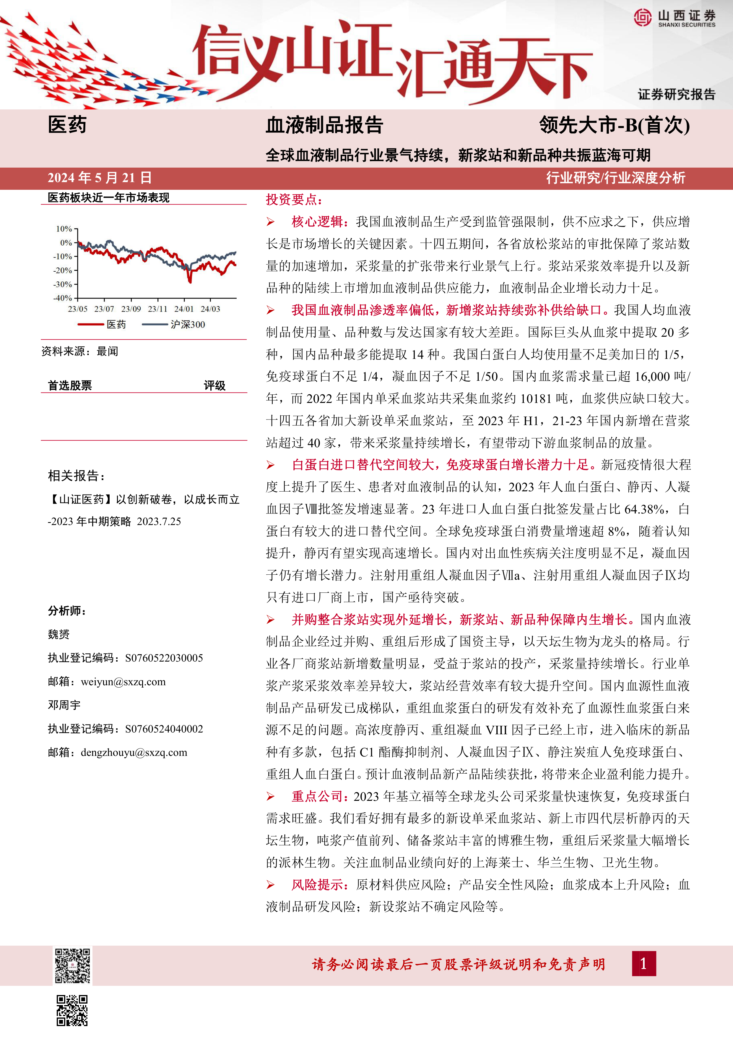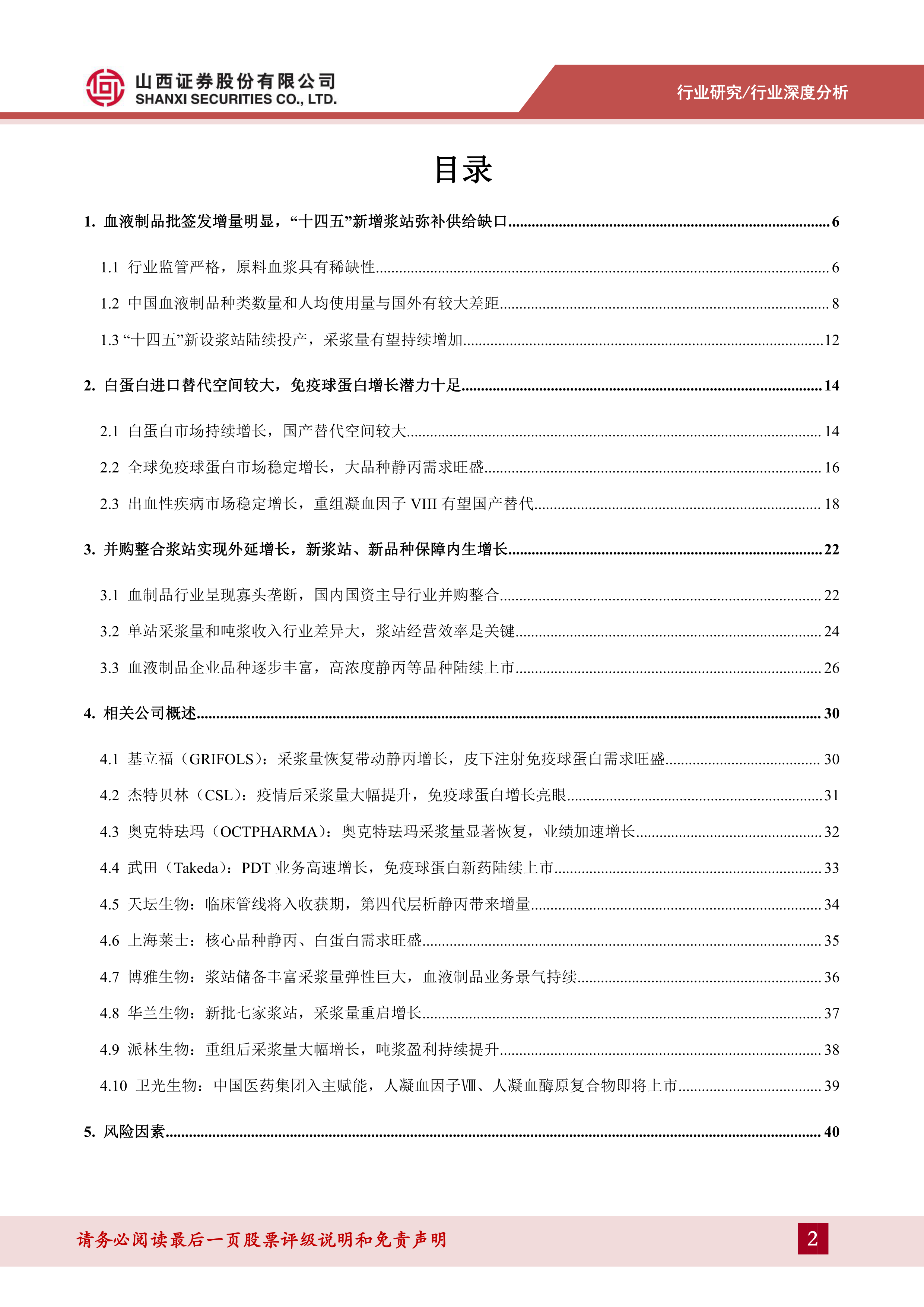 风险提示:原材料供应风险;产品安全性风险;血浆成本上升风险;血液制品研发风险;新设浆站不确定风险等。
