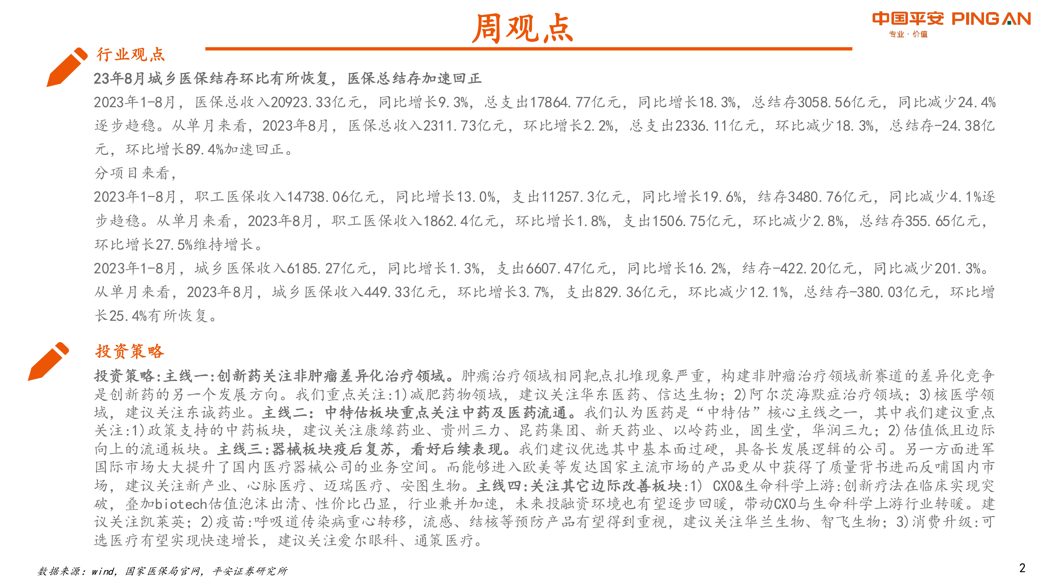 医药生物行业周报:23年8月城乡医保结存环比有所恢复,医保总结存加速回正
