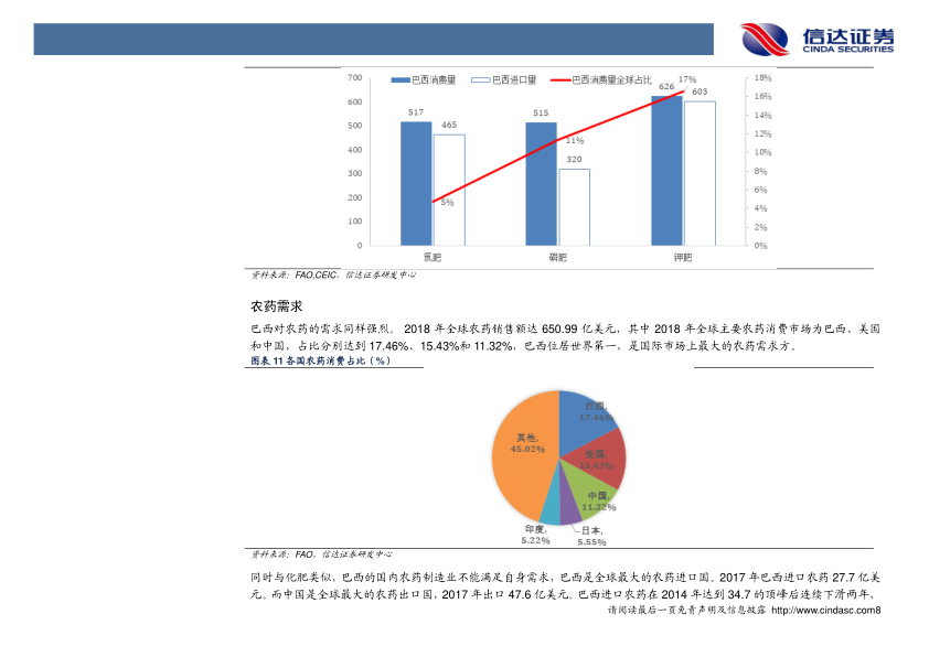本报告分析了巴西养老金改革对农业及农化市场的影响。巴西养老金改革有望释放财政空间,支持农业发展。巴西作为农业大国,对农化产品需求旺盛,尤其在化肥和农药方面。巴西化肥需求的增长将对国际钾肥市场产生重要影响。建议关注相关投资标的,同时也需注意全球宏观经济波动、疫情影响以及农业生产不及预期等风险因素。