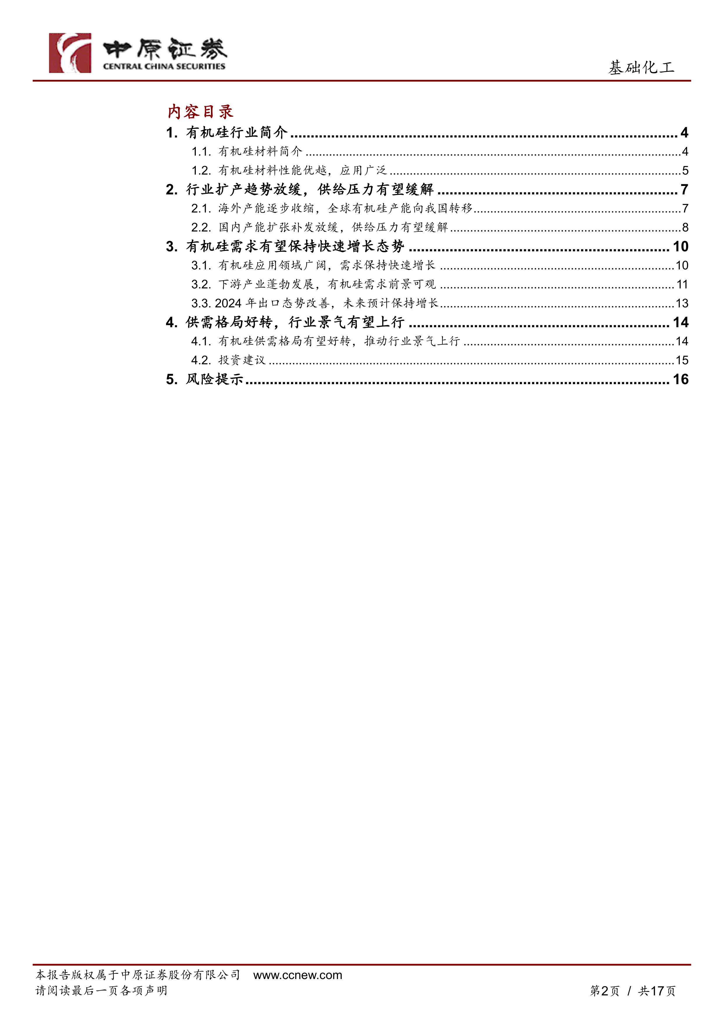 风险提示:有机硅下游需求不及预期;行业产能扩张力度超出预期;宏观经济形势变化;原材料价格大幅上涨。