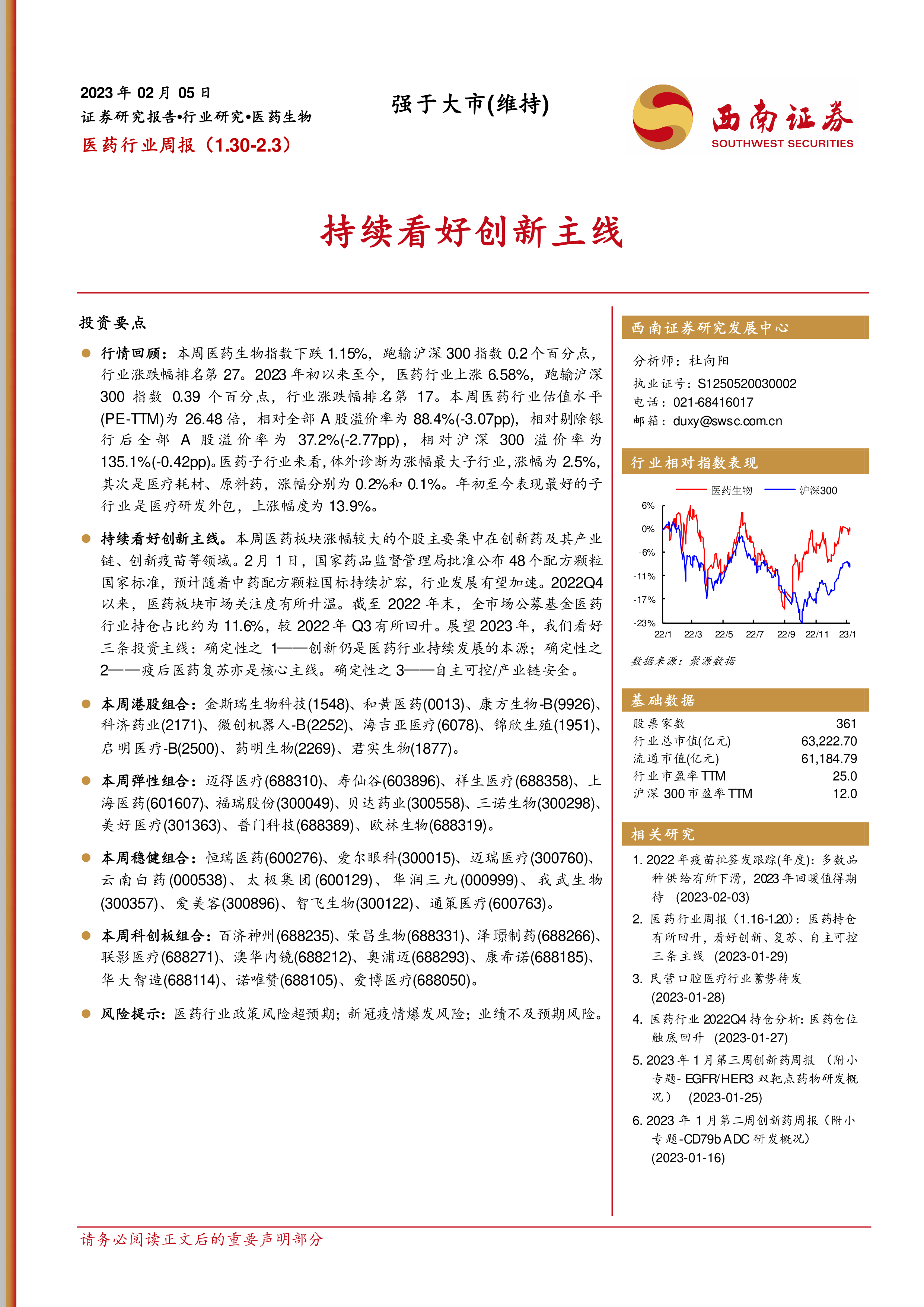 风险提示:医药行业政策风险超预期;新冠疫情爆发风险;业绩不及预期风险。