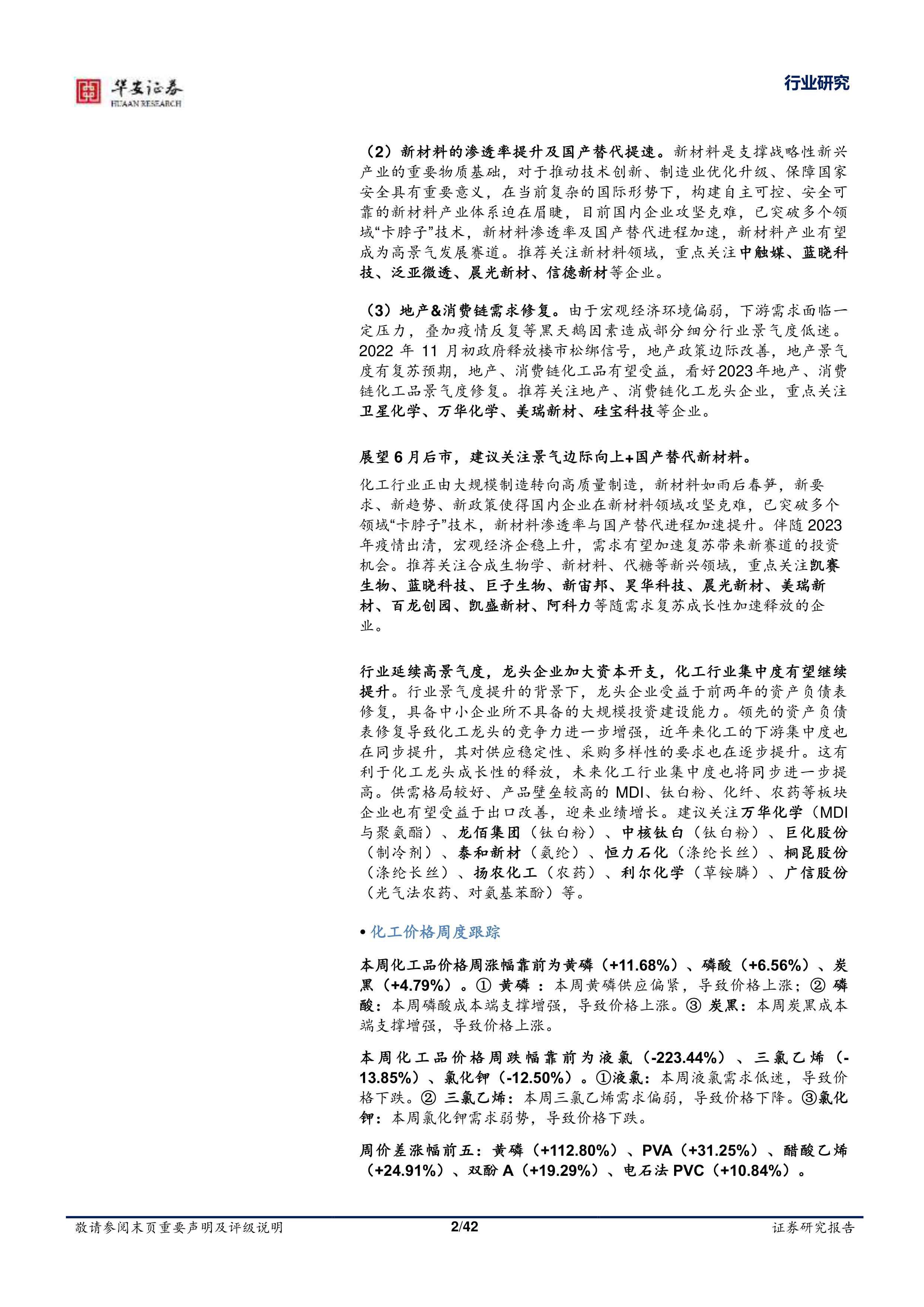 基础化工行业周报:万华化学上调MDI挂牌价,黄磷、PVA价差扩大