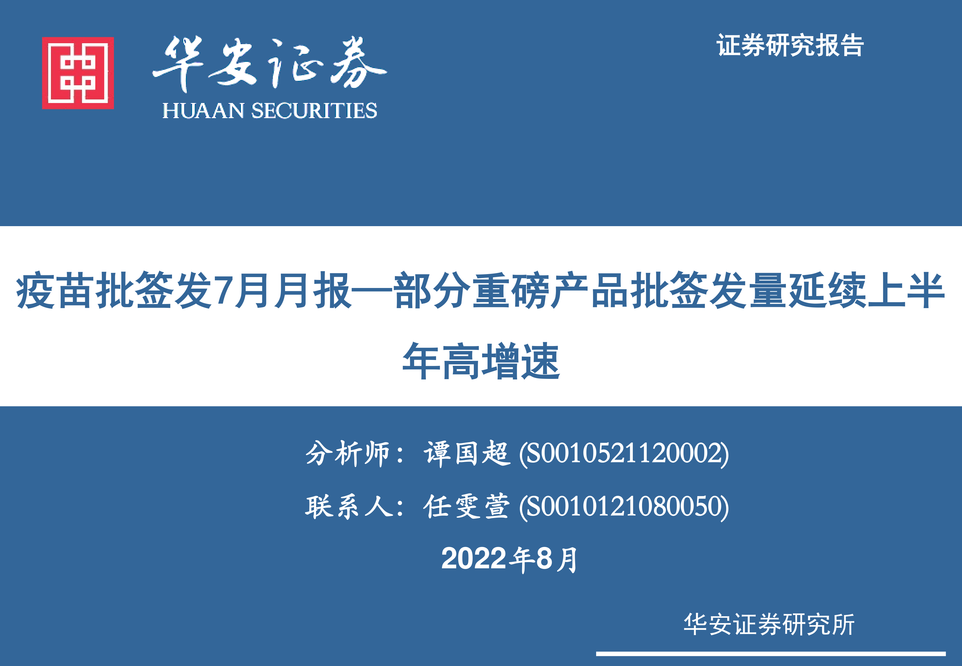 疫苗批签发7月月报:部分重磅产品批签发量延续上半年高增速