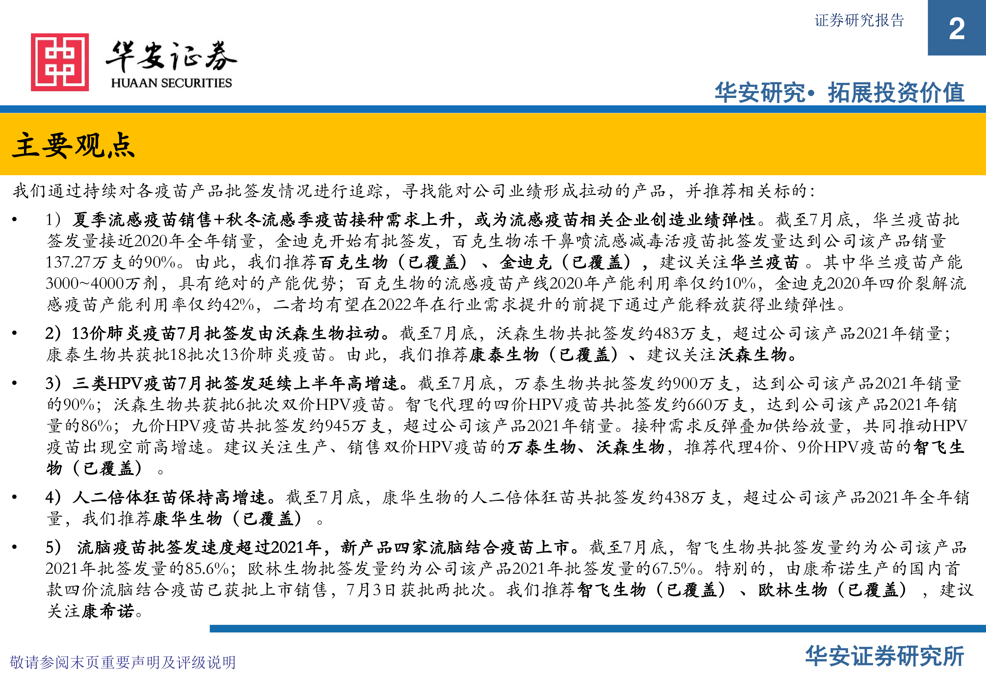 我们通过持续对各疫苗产品批签发情况进行追踪,寻找能对公司业绩形成拉动的产品,并推荐相关标的: