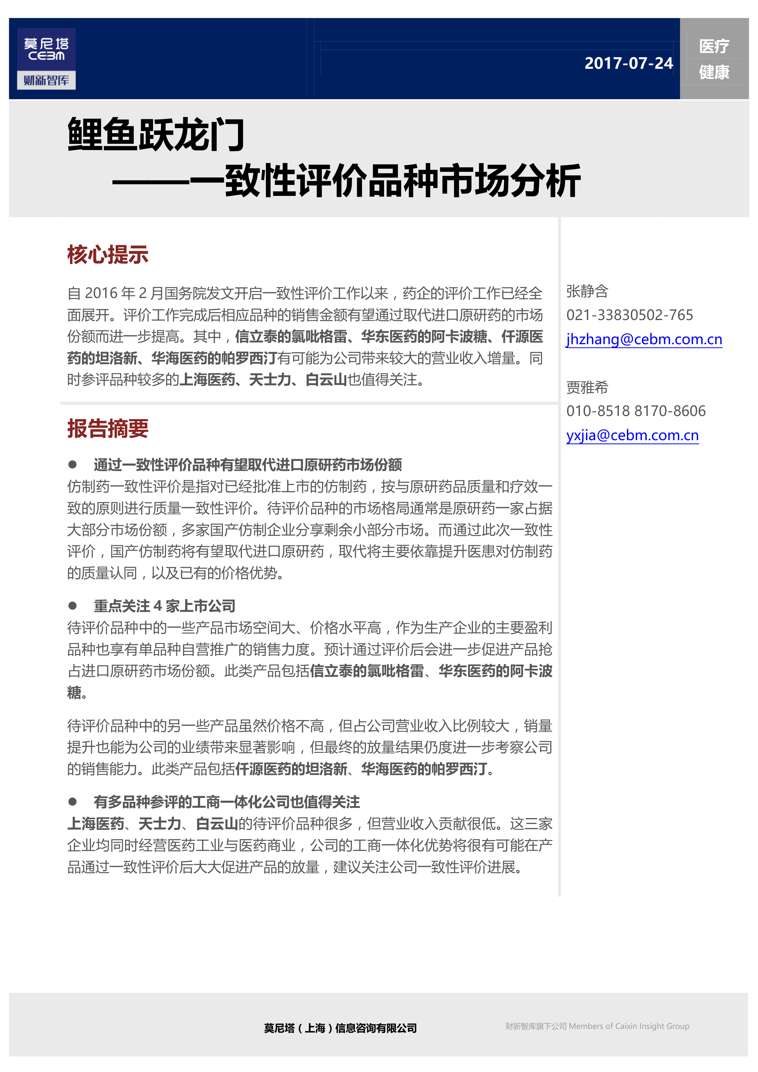 医疗健康:一致性评价品种市场分析-鲤鱼跃龙门