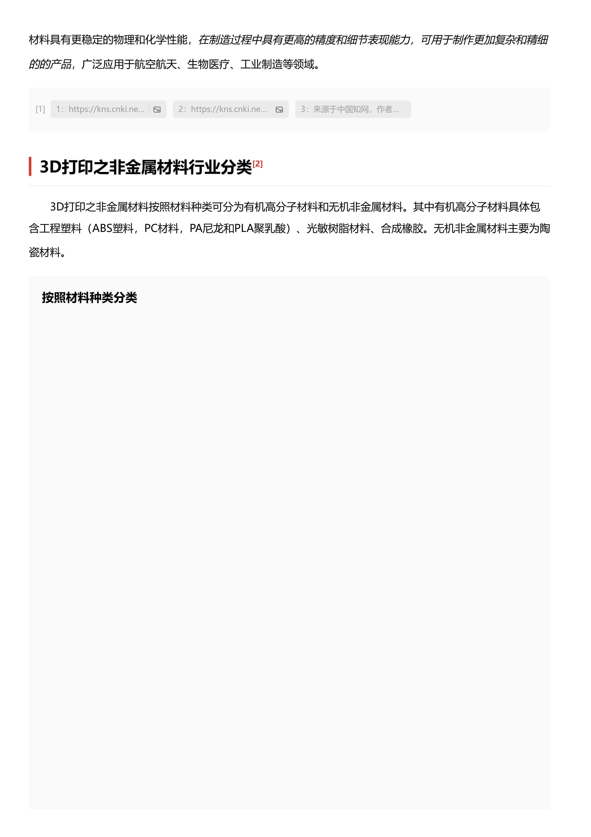 3D打印之非金属材料是3D打印技术所需的非金属生产原材料,主要分为有机高分子材料和无机非金属材料。