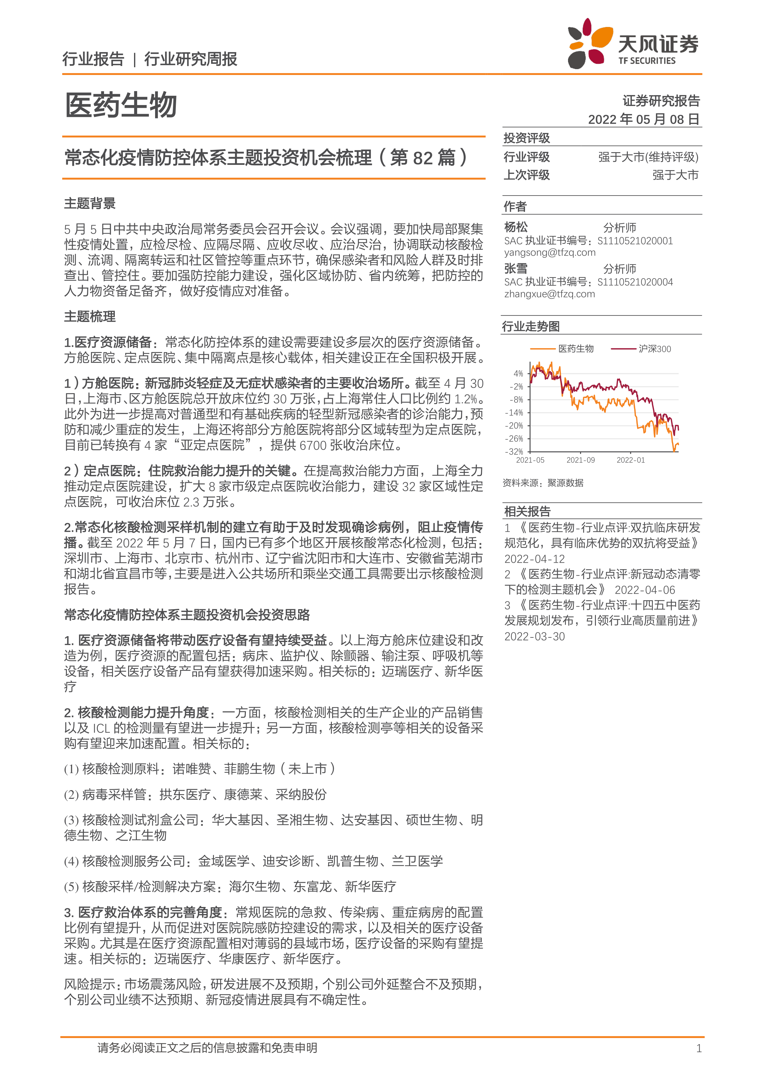 医药生物行业研究周报:常态化疫情防控体系主题投资机会梳理(第82篇)